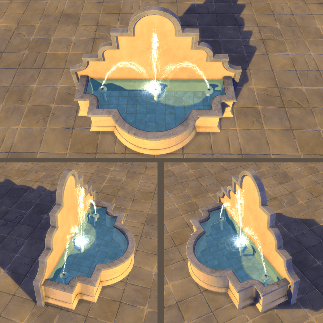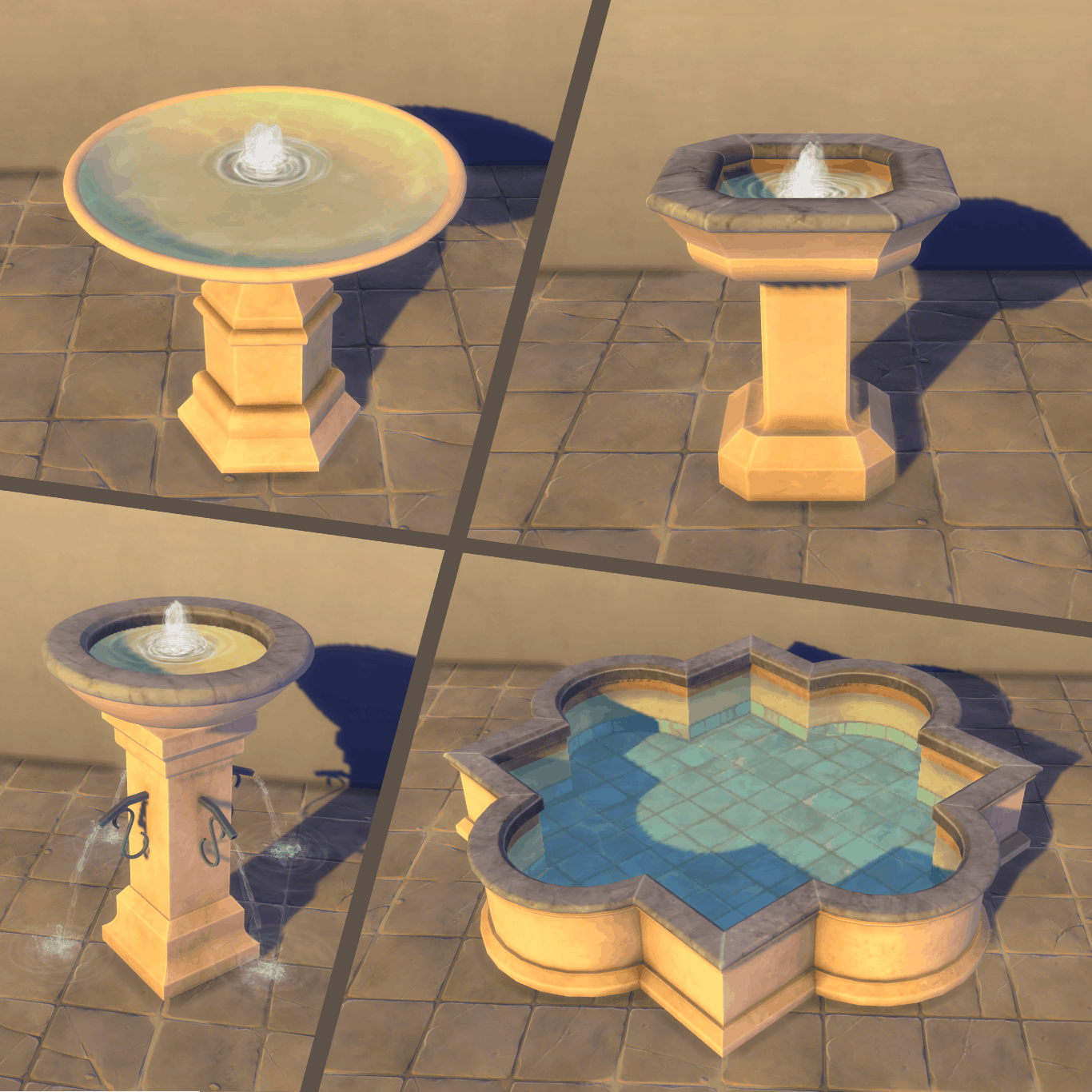 I know right!!!, this game was missing some fountains! Well don’t be disheartened, I present you with ‘Fuvwara’ a fountain set with 6 pieces which you can mix and match to create more combinations as you like.