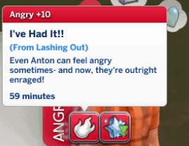 This moodlet only lasts for an hour, but during that hour, their rage has quite the noticeable impact.
