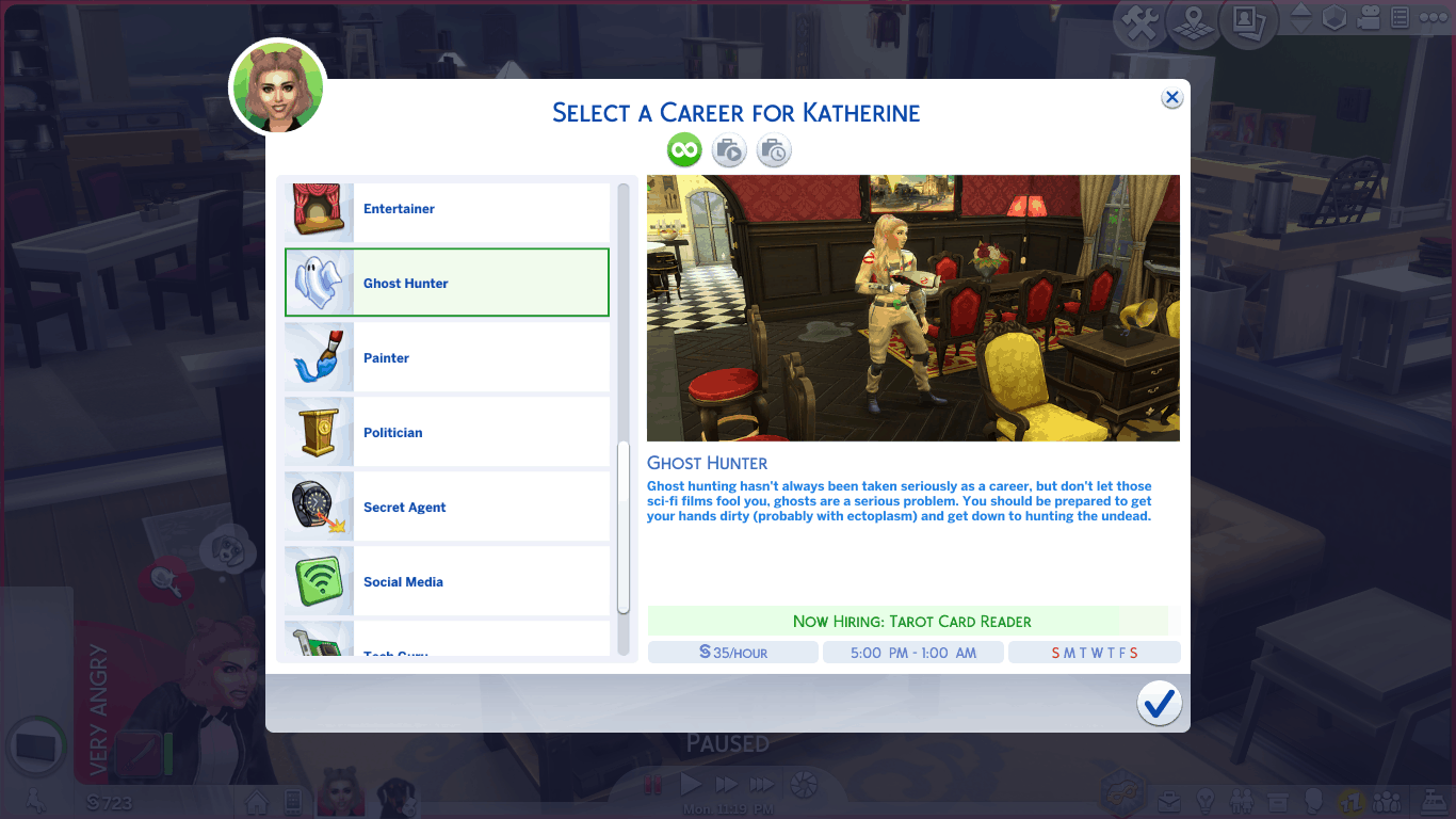 At this level, don’t be surprised if other sims don’t take your “profession” seriously. Ghost Hunting is a strict discipline that blurs the line between science and sci-fi. Good work and professionalism will go a long way towards building respect for your expertise.