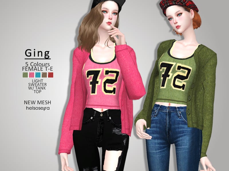 Our database contains only the highest quality Sims 4 mods that meet the most stringent requirements, like GING – Sweater w Tank Top Sims 4 Mod. This guarantees that our visitors have access to the most exclusive and useful files.