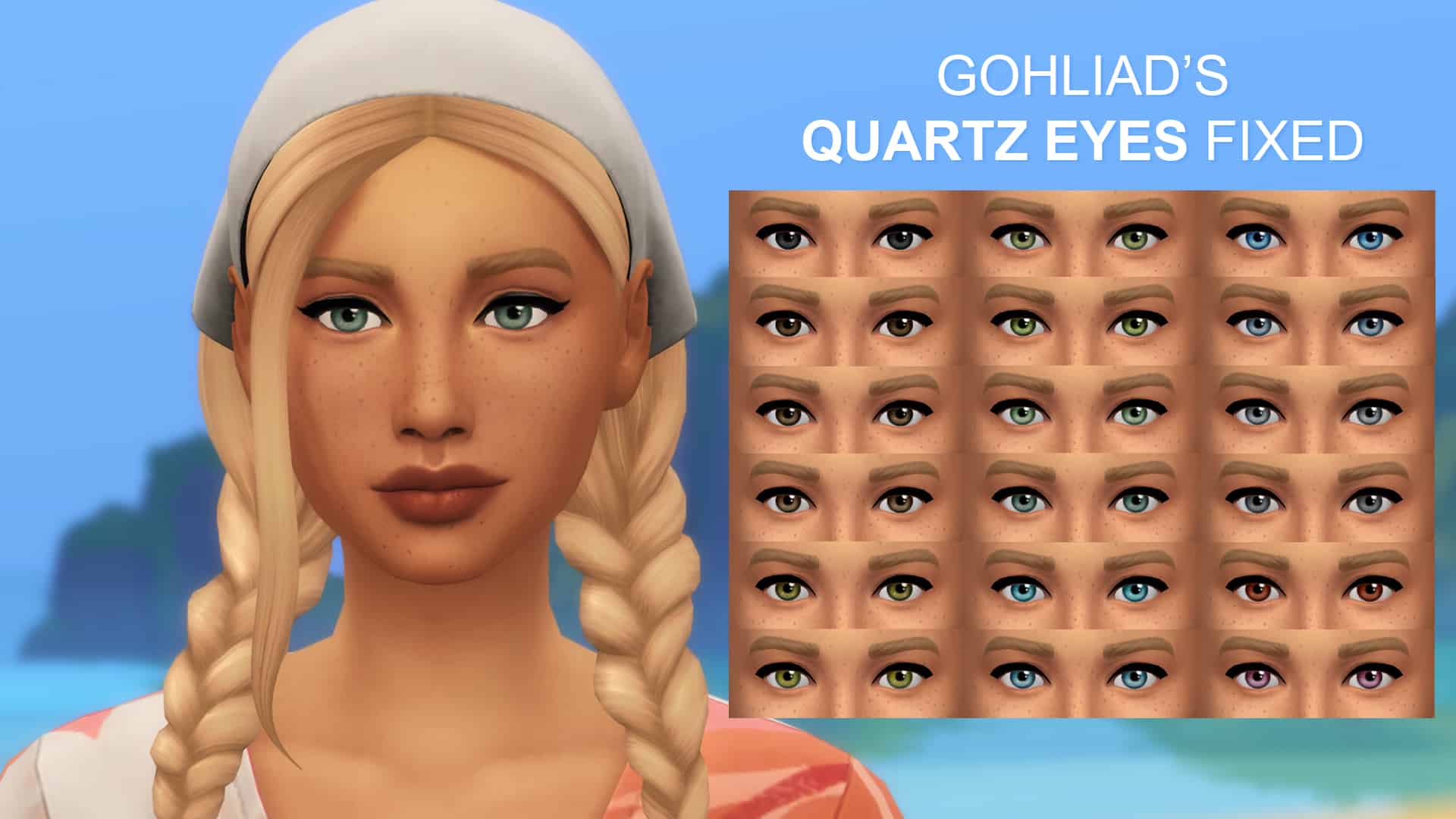 Some of you may still remember that a fantastic CC creator Gohliad retired back in 2017 and subsequently left her content unsupported. Luckily, she allowed players to keep her legacy alive as long as the stuff isn’t put behind paywalls and the credit is given. My most favorite creation of hers is definitely the Quartz Eyes, so I decided to fix them by using CmarNYC’s amazing utility, and redrawing some of the mismatched swatches by myself.