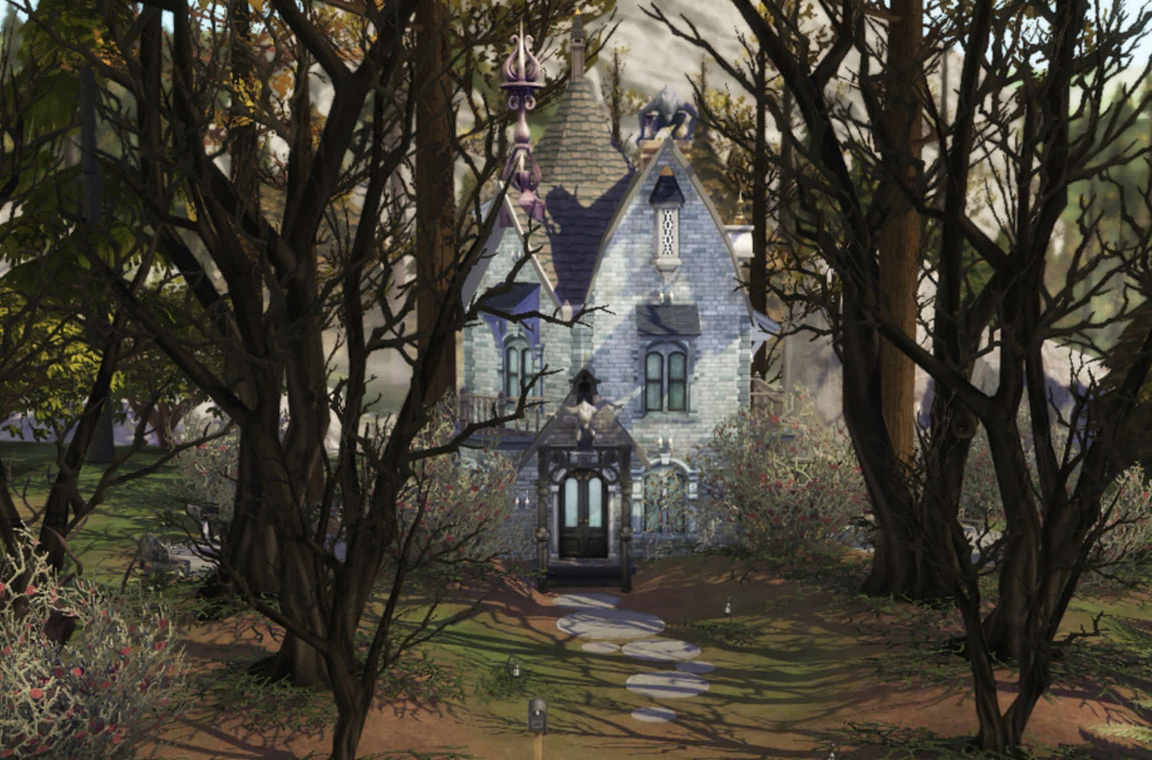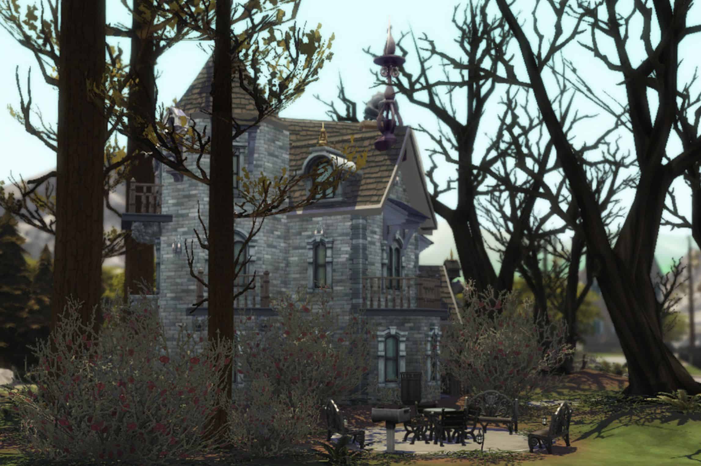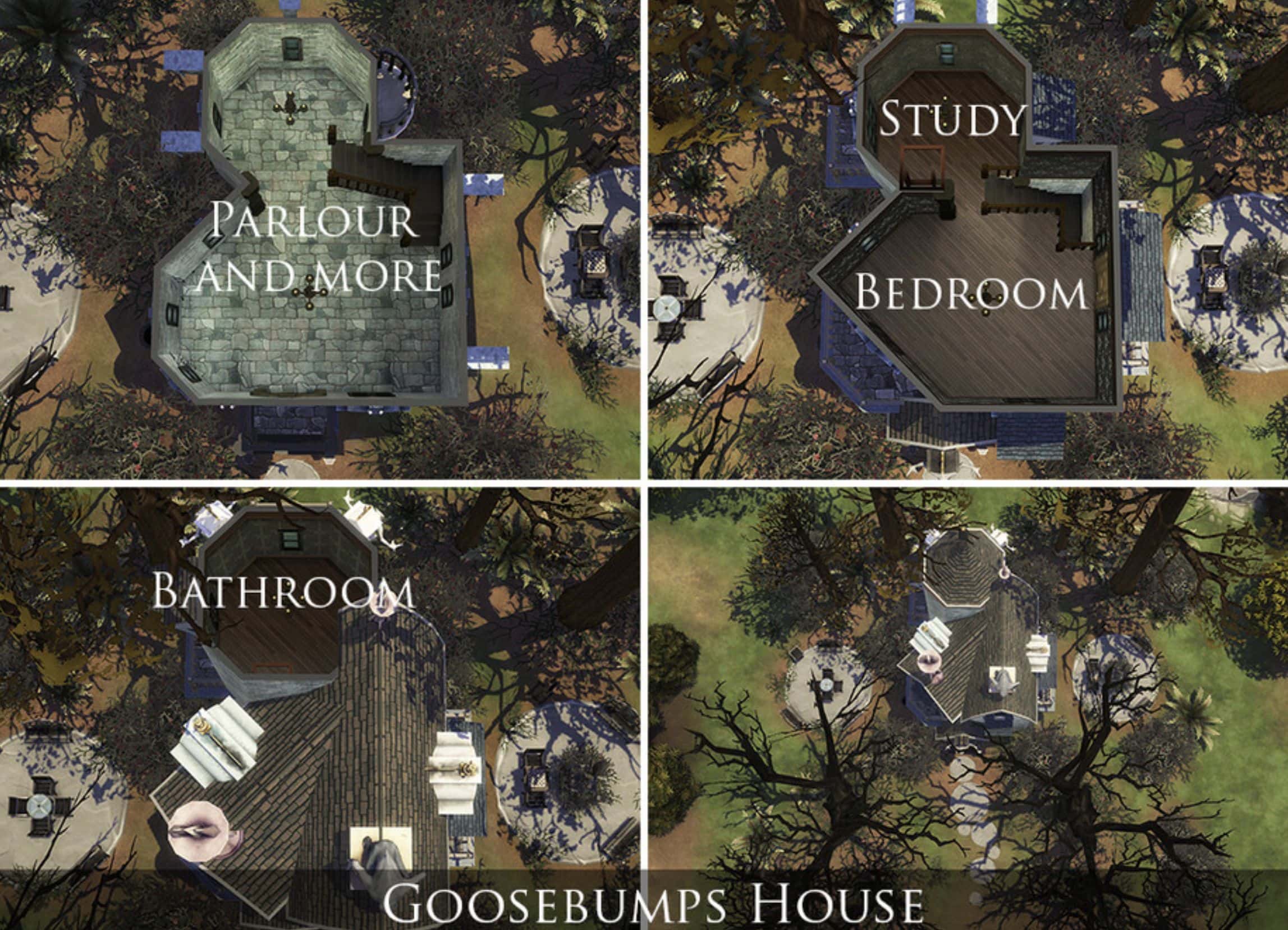 Goosebumps House is a spooky Halloween place in a traditional style. The lot features a parlour with a kitchen and dining, one bedroom, one bathroom, a study plus a landscape garden with attractions.