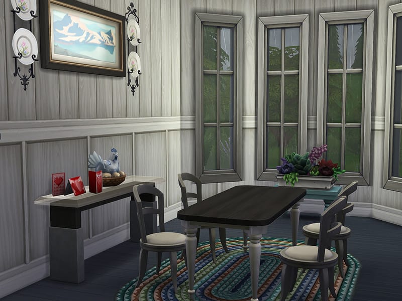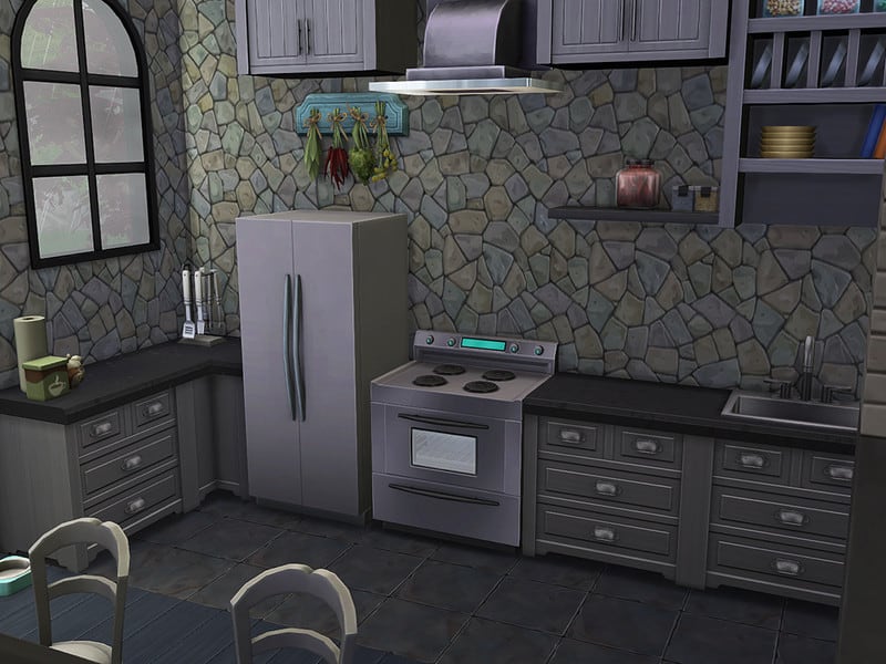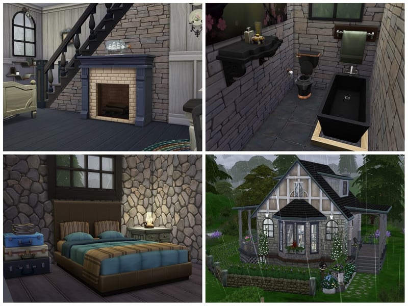 Gwendolyn is a quaint stone cottage, suitable for housing a single sim or a sim couple. This cottage contains one kitchen, a living room, a dining room, one bathroom, an attic bedroom, as well as a front and a back porch.