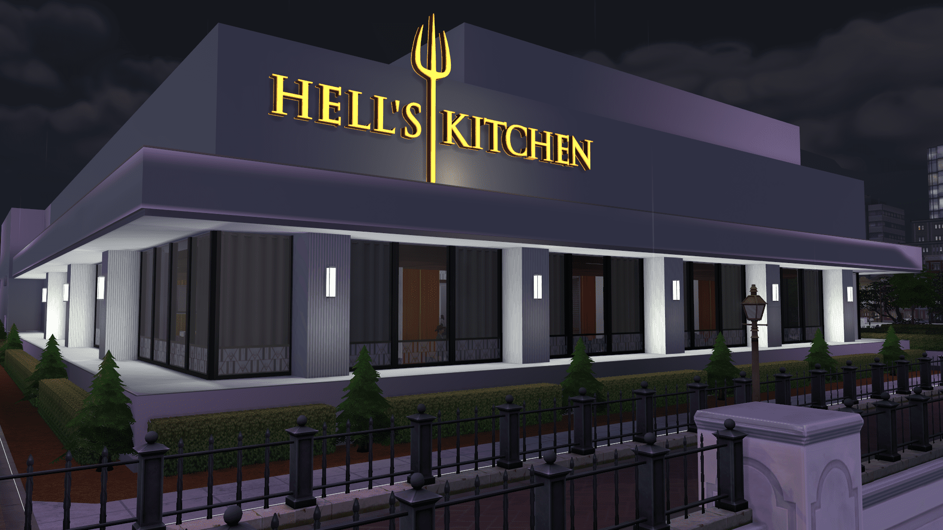It is finally finished! A huge shoutout to Syboulette and ArwenKaboom for creating the signs, and Numbers Woman for organizing them! The signs can be found at The Sims Resource! I tried to make this as accurate as possible, but I am not perfect. This restaurant is based off the Hell’s Kitchen restaurant at Caesars Palace in Las Vegas. I used hundreds of pictures for reference, but could not find a complete layout of the building, so a lot of it I tried to be creative about.