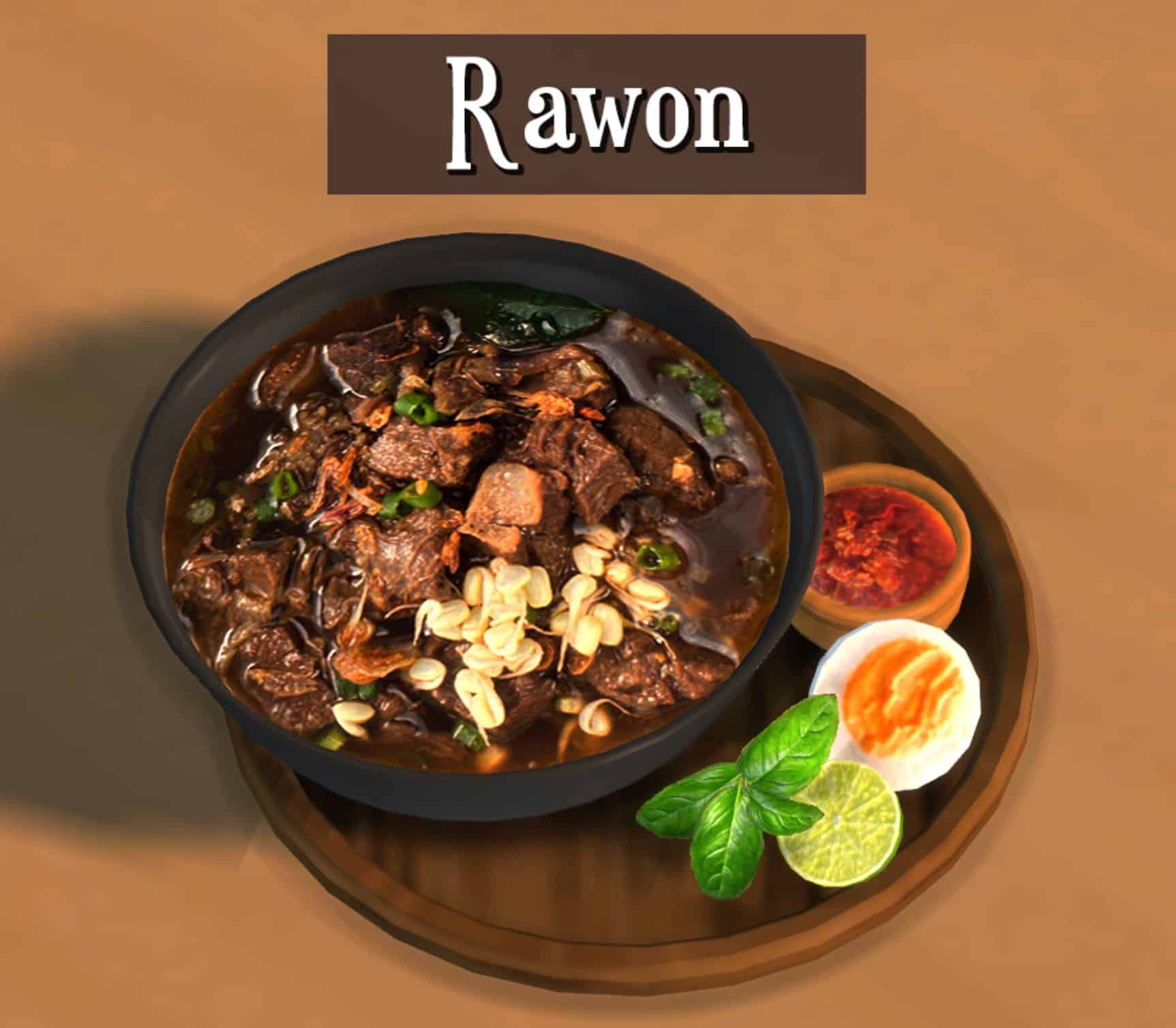 Rawon Rawon is Indonesian beef soup originating from Surabaya, East Java, Rawon utilizes the black keluak nut as the main seasoning, which gives a dark color and nutty flavor to the soup.