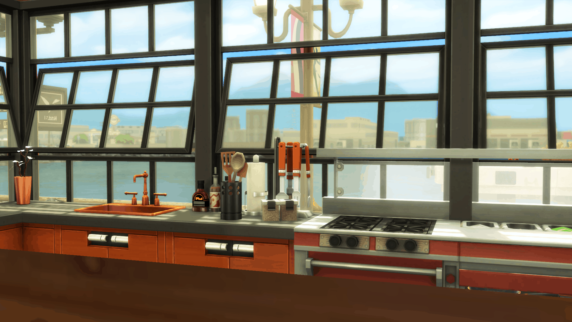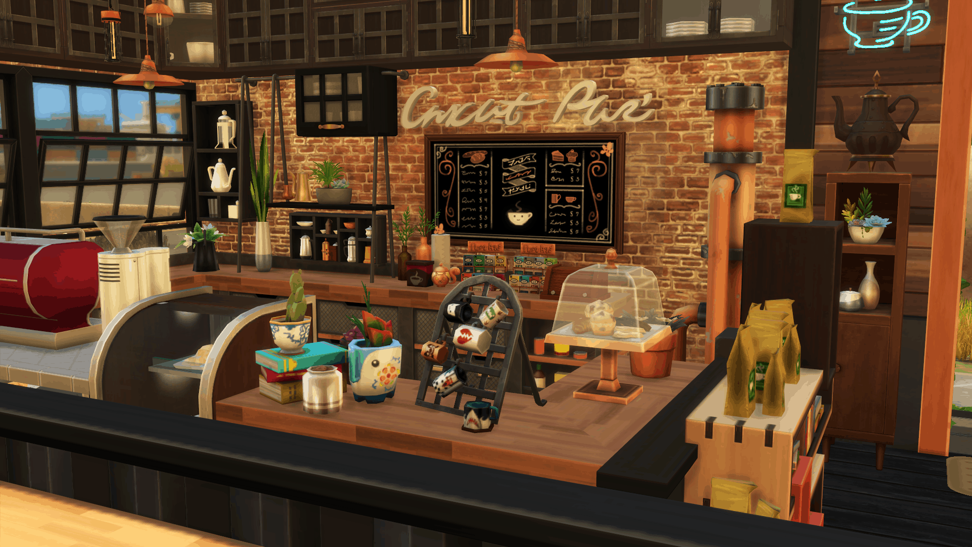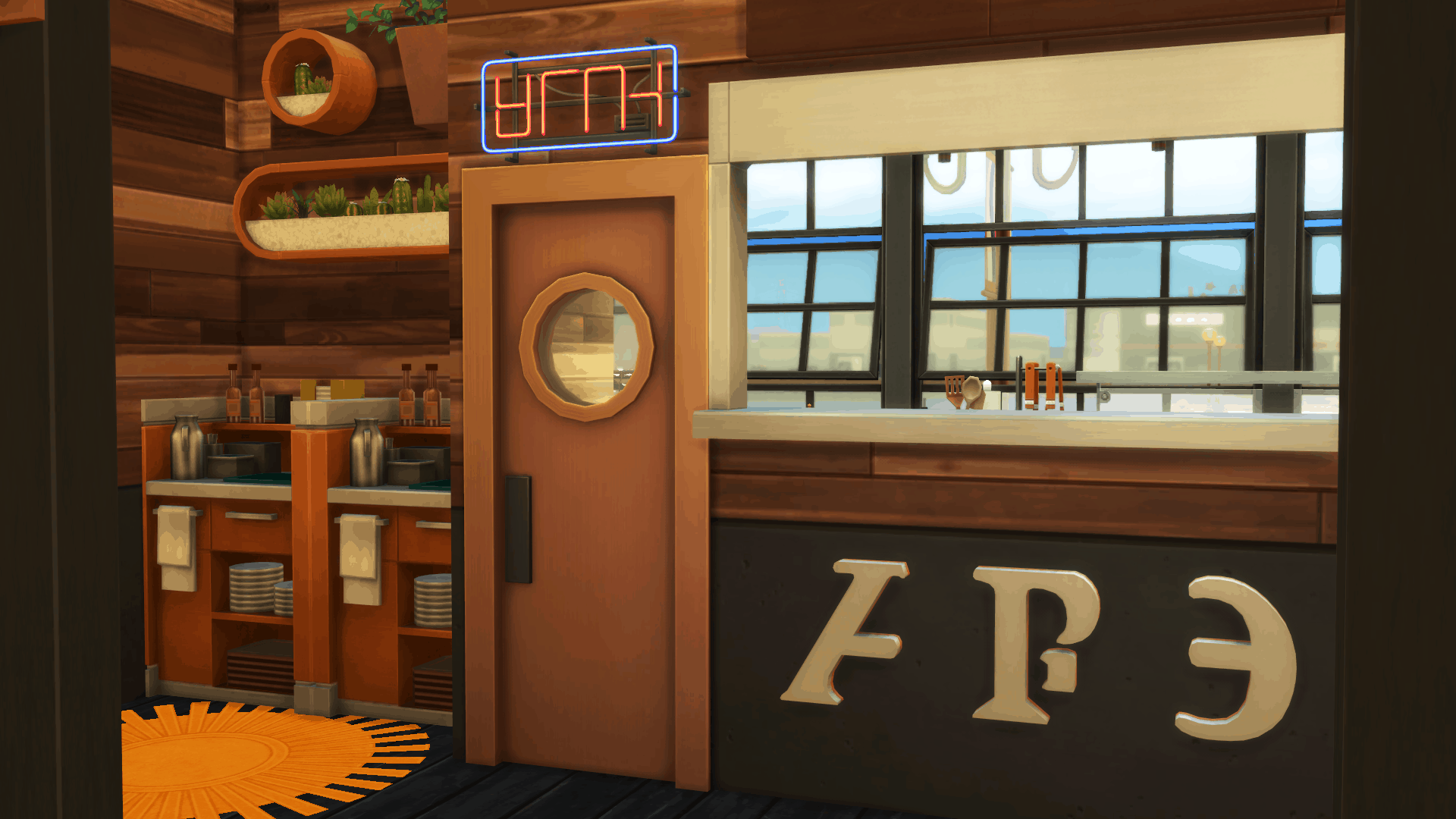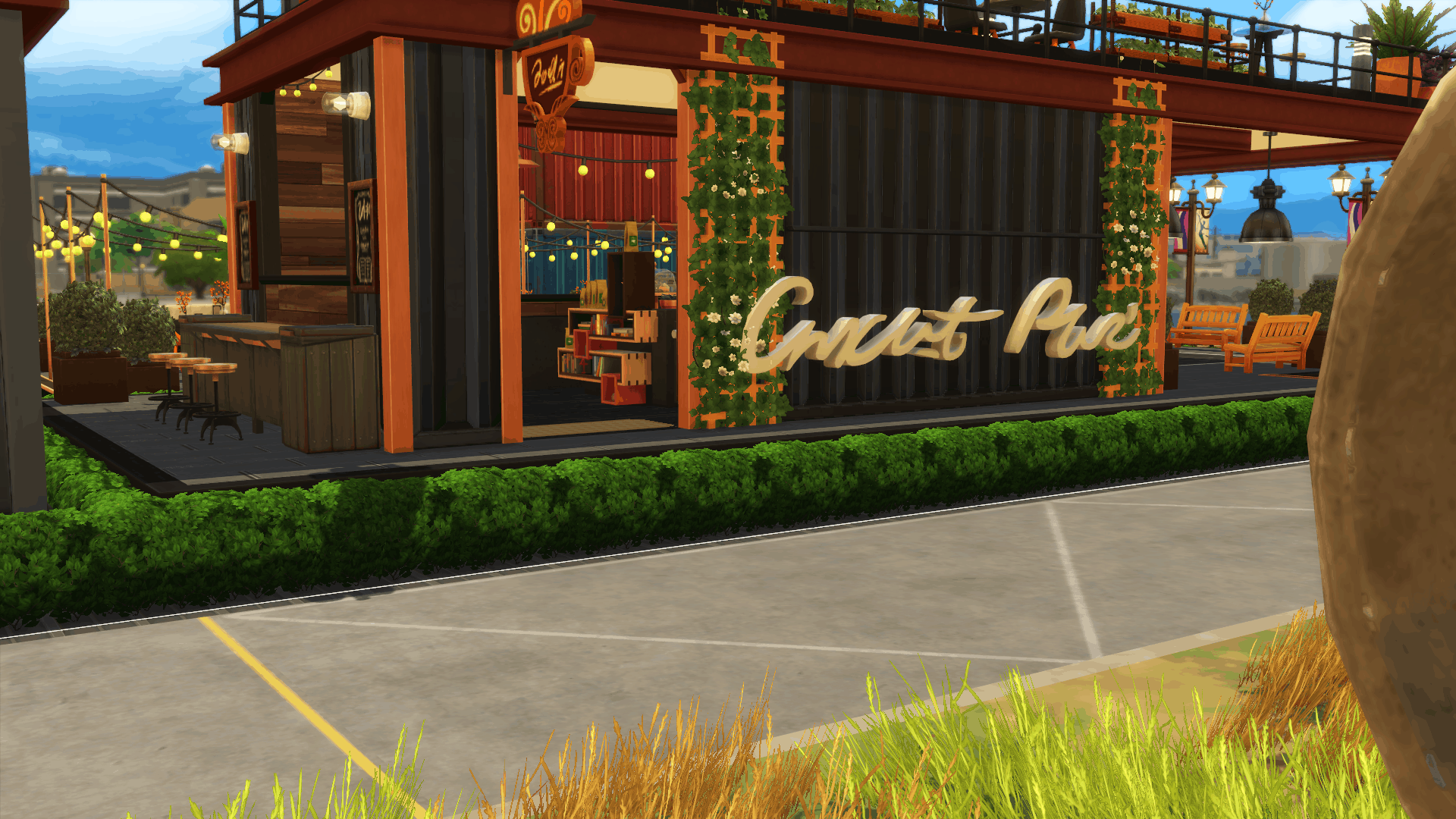 Industrial style food parks are always one of my favorite places to visit so I decided to create one in The Sims! This community lot is situated in the heart of Evergreen Harbor in the lot The Shipping Views overlooking the polluted landscape of the city. This community lot offers an unassuming Michelin-starred restaurant as well as a cozy cafe. You can run the community lot as a Cafe but I recommend you running it as a Restaurant instead.