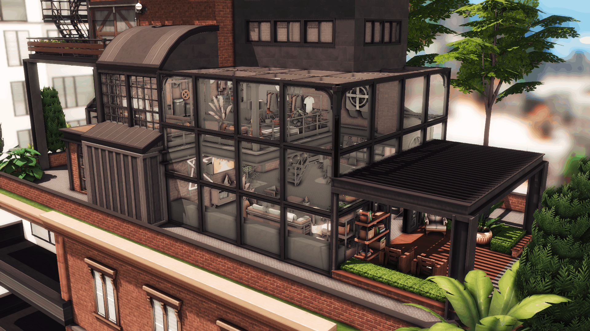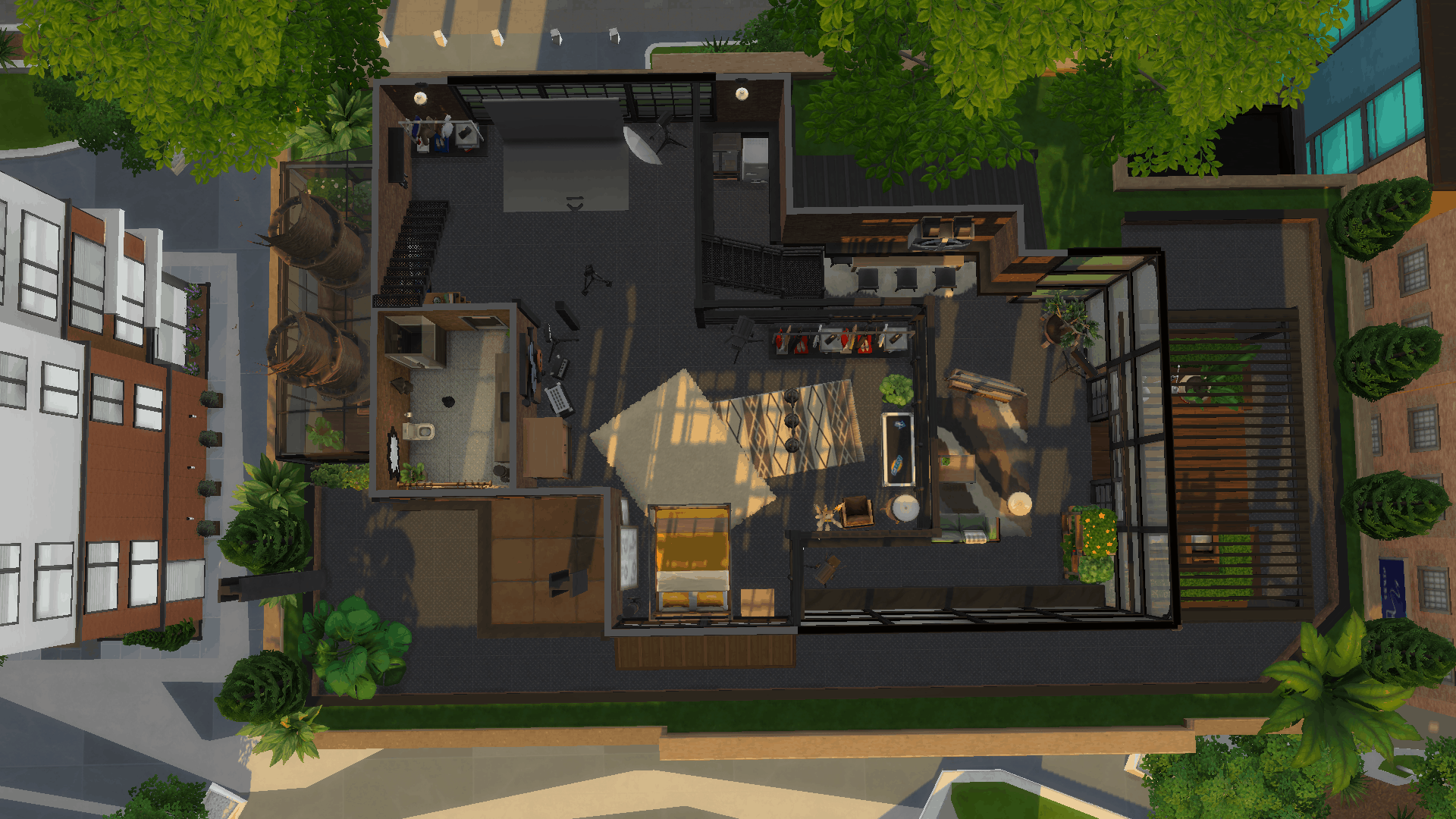 Enjoy the best o the new kit with this amazing industrial penthouse in the middle of San Myshuno!