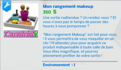 With Instant Makeup Mod, you will be able to makeup your Sims instantly (Vintage Glamour pack is required).