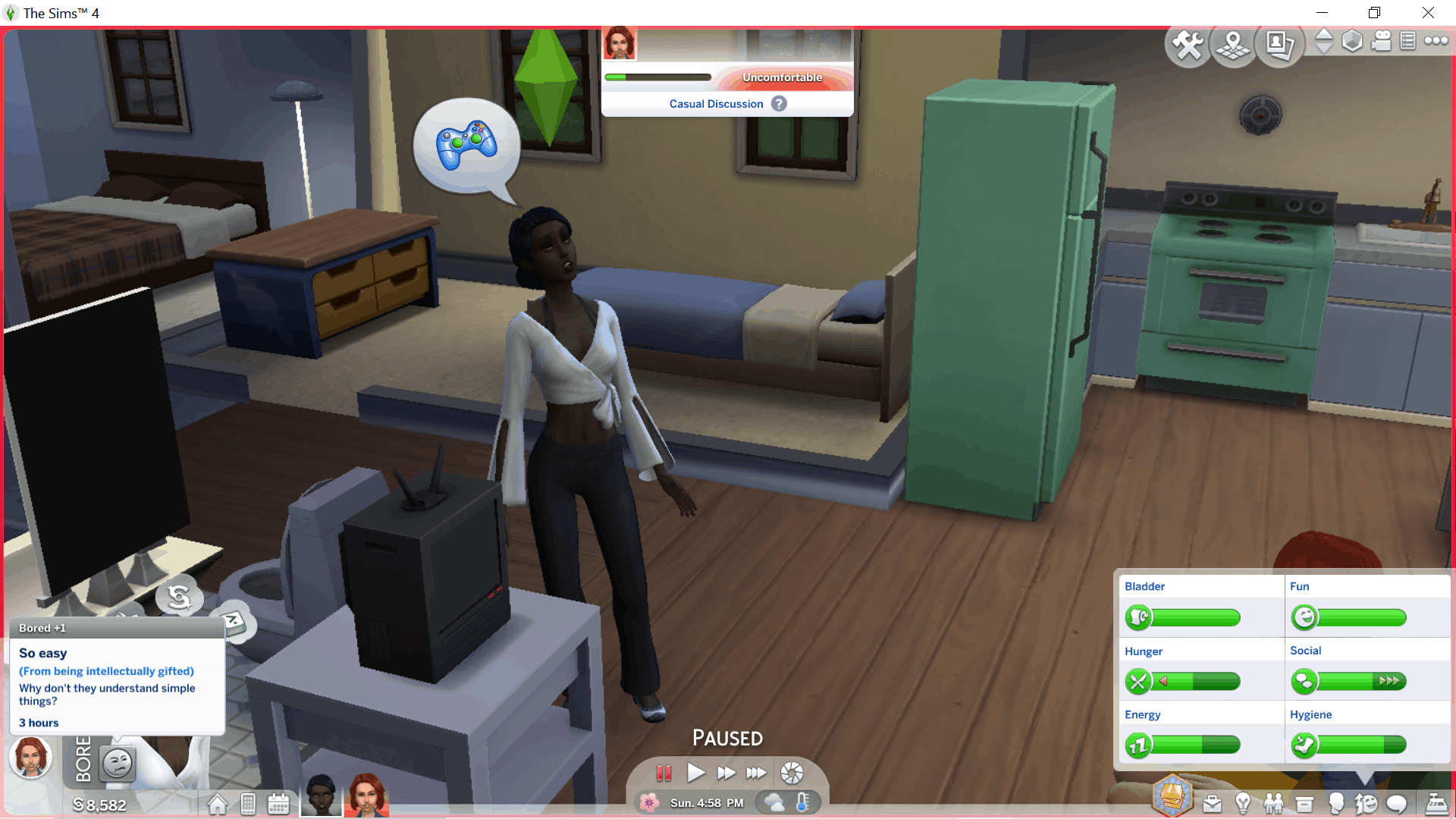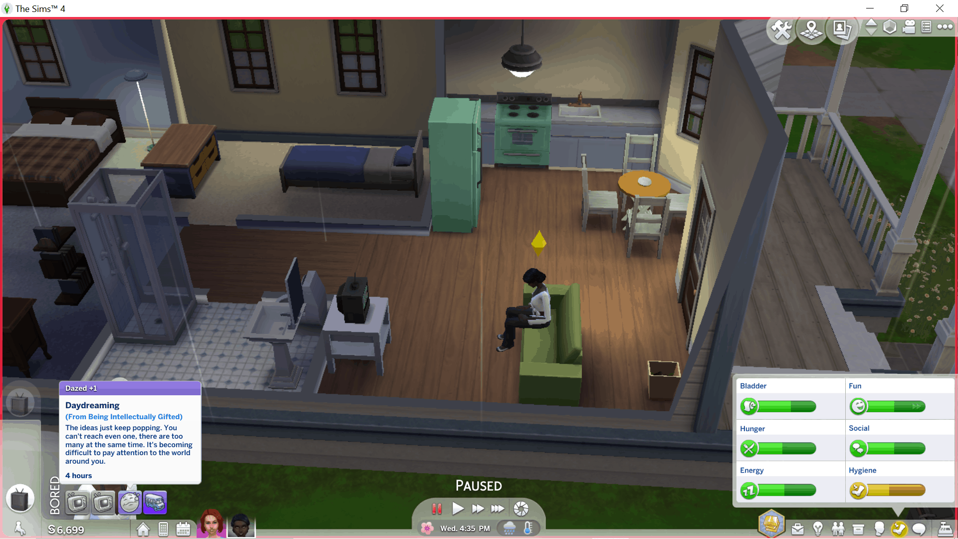 With their mind going from thought to thought, these Sims will tire quicker. They get a bonus on learning mental and creative/musical skills. On the other hand, their social skills and friendships will build slower. As for school/work, their performance is boosted a little, but they take a bit more time to complete school tasks.