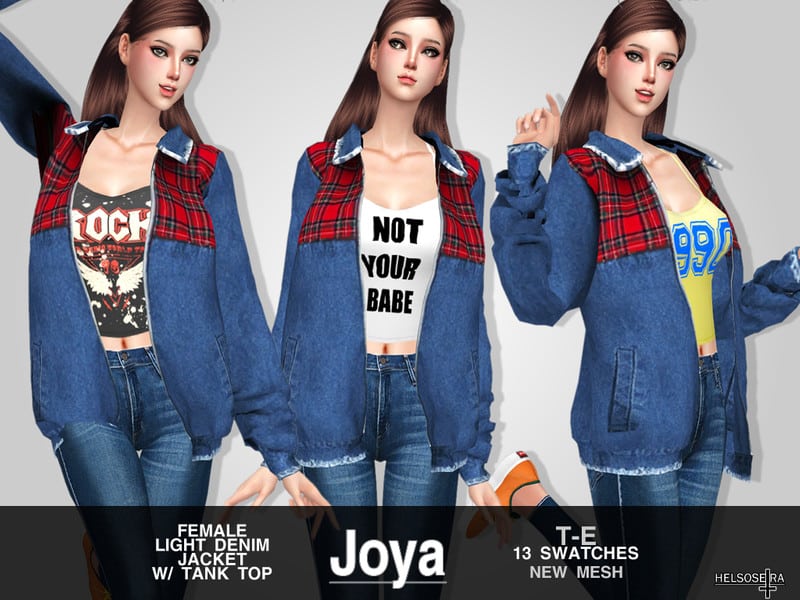 Our database contains only the highest quality Sims 4 mods that meet the most stringent requirements, like JOYA – Denim Jacket w Tank Top Sims 4 Mod. This guarantees that our visitors have access to the most exclusive and useful files.