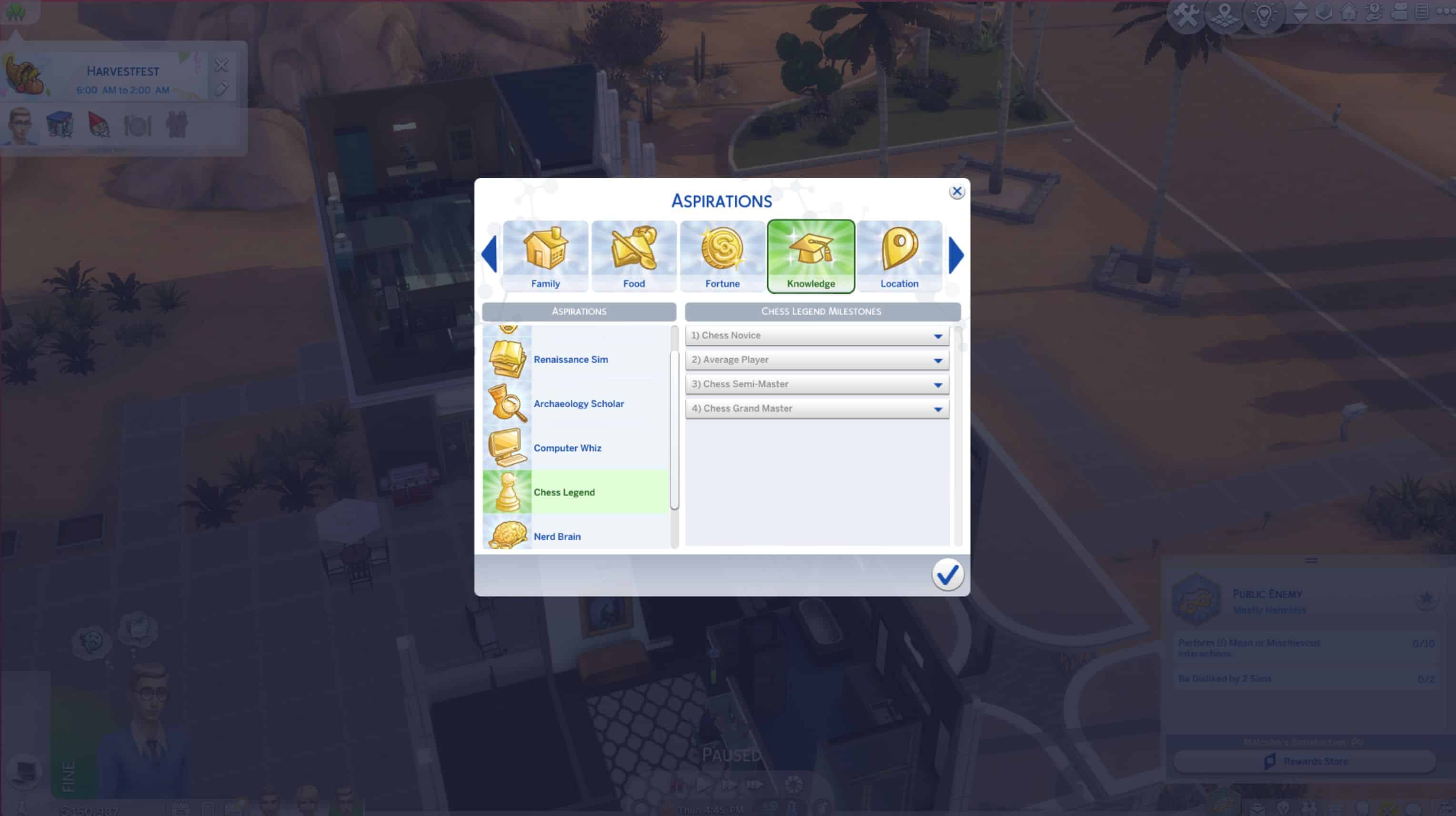 Description: Logic is cold and calculated – an impenetrable fortress that cannot be undermined by passion-filled banter. Chess is the battleground for those who adhere to logic. A Sim who can both master the path of logic, and reach the coveted rank of Chess Grand Master will forever be enshrined in memory.