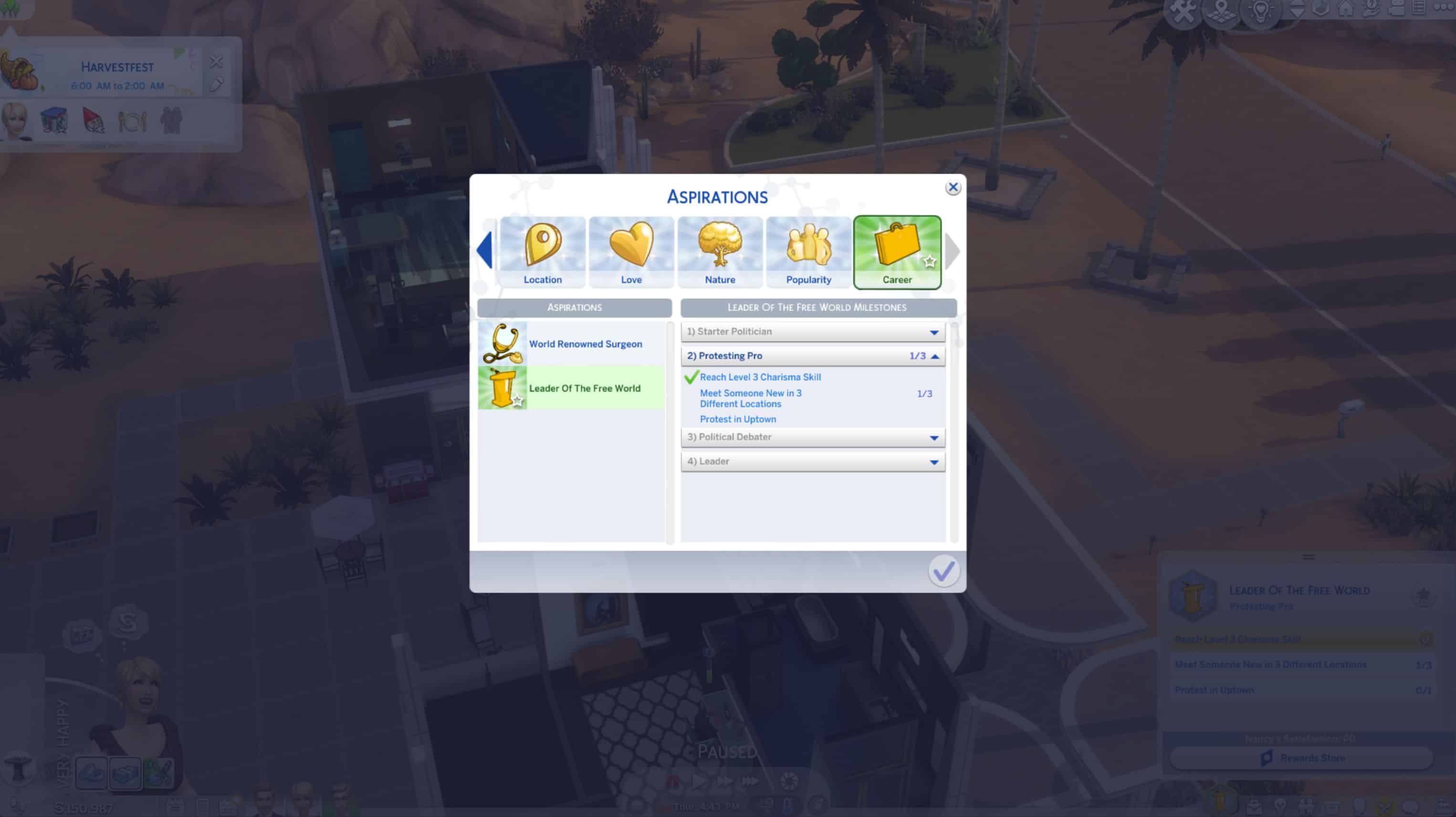 Leader Of The Free World is under the career category. (Requires City Living)