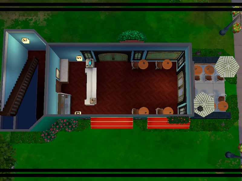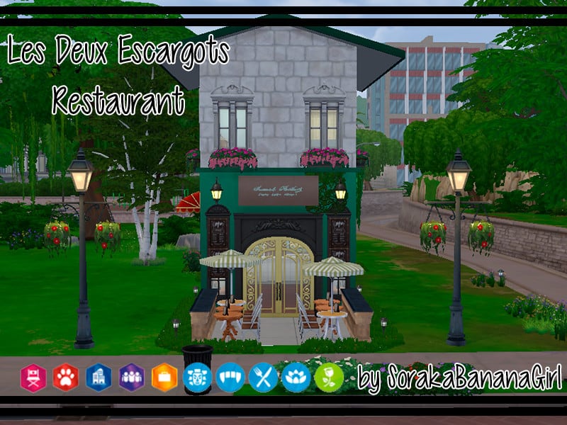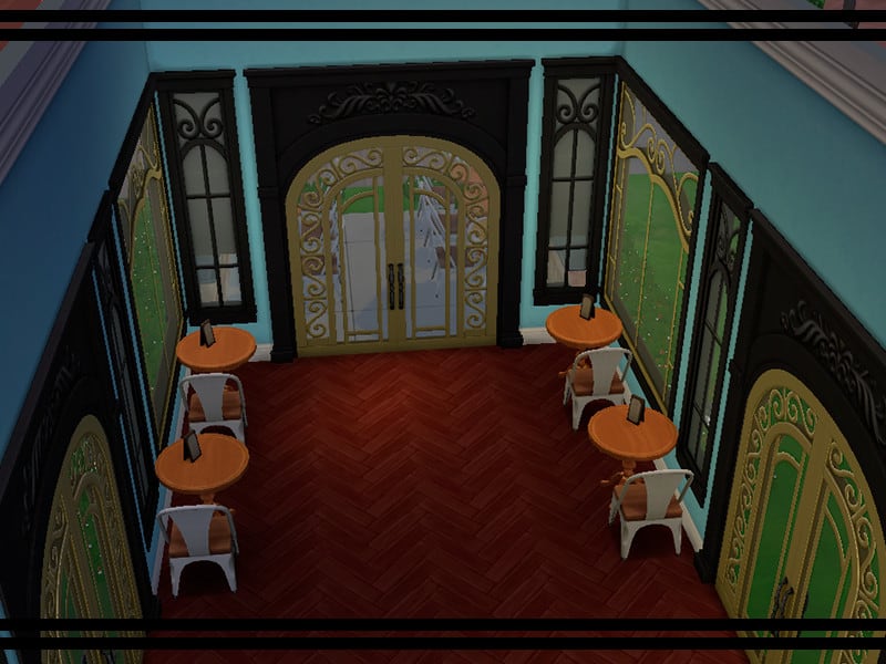 This is my version of the Overwatch french restaurant in the Paris map. The restaurant has two floors, 3 bathrooms, two chef stations, 10 single dining tables (you can add more if you want) and has mostly coffe drinks in the drink menu, the rest of the menu are a mix of breads, some sea foods and a good mix of meat and vegetarian foods, the staff outfits are black and white and the customer attire is everyday, obviously you can change anything you like.