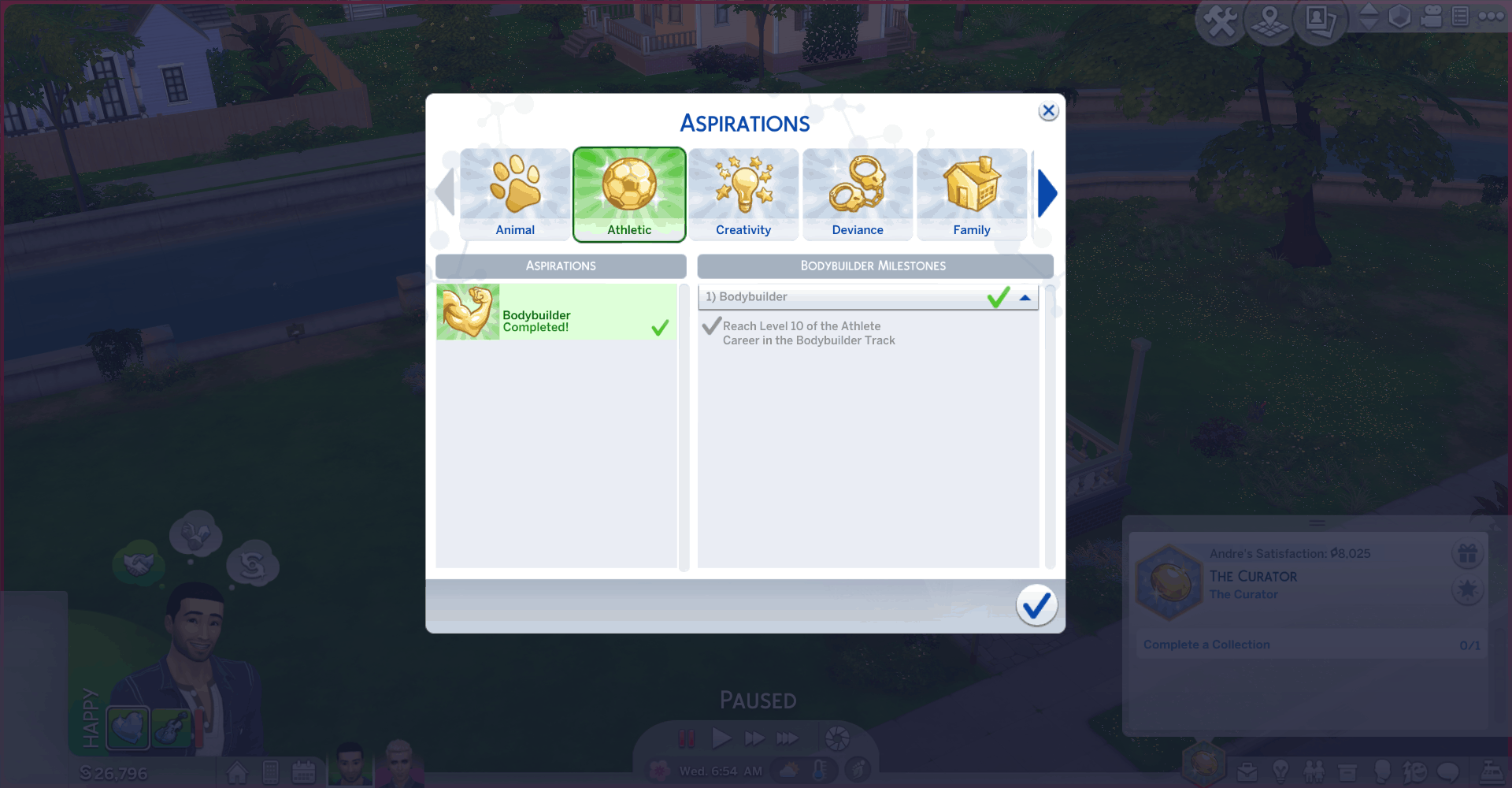-Revamps all Aspirations to be a single, more difficult, objective. Designed to take most of a Sim’s lifetime.