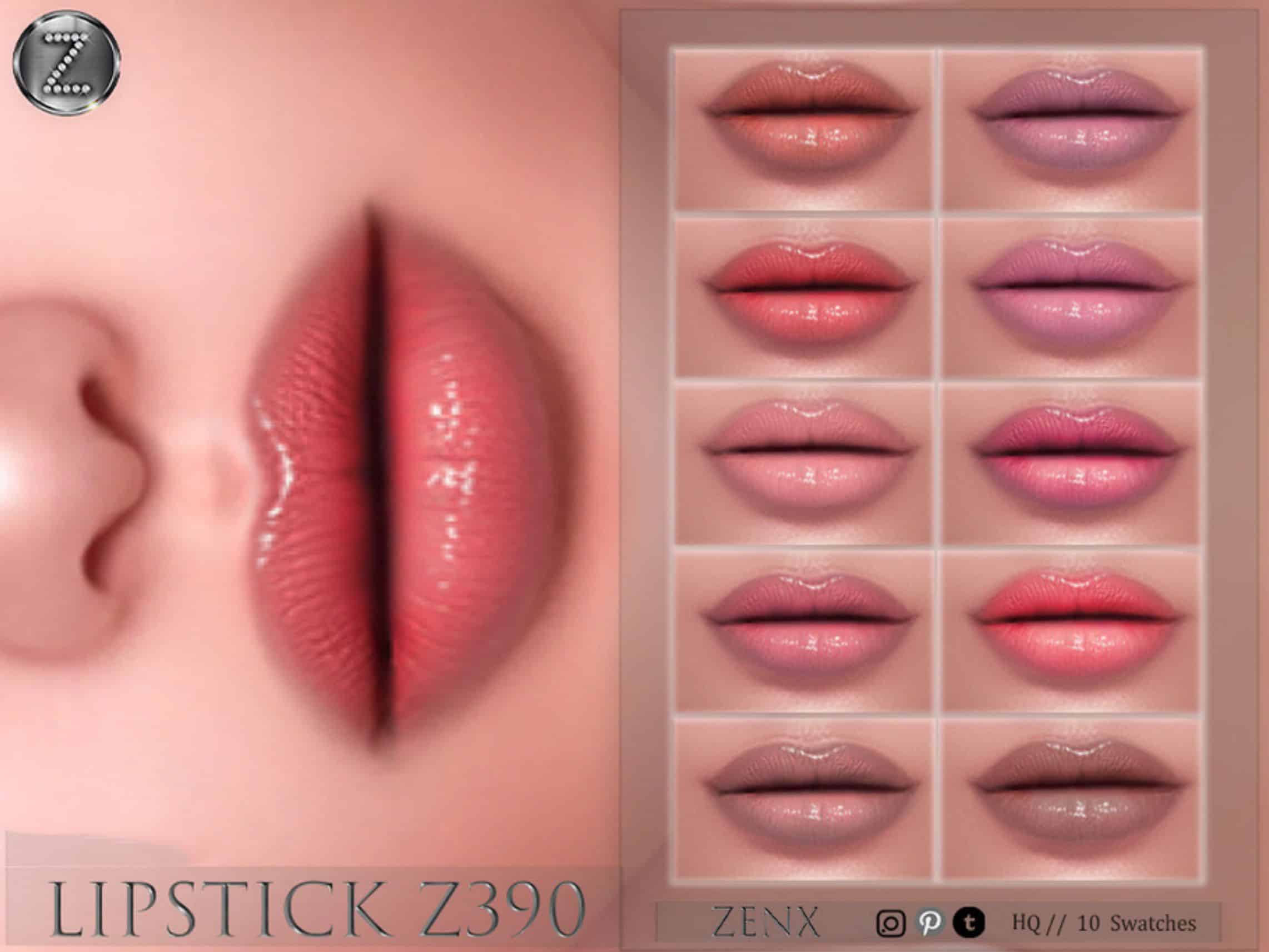 Our database contains only the highest quality Sims 4 mods that meet the most stringent requirements, like LIPSTICK Z390 +HQ Sims 4 Mod. This guarantees that our visitors have access to the most exclusive and useful files.