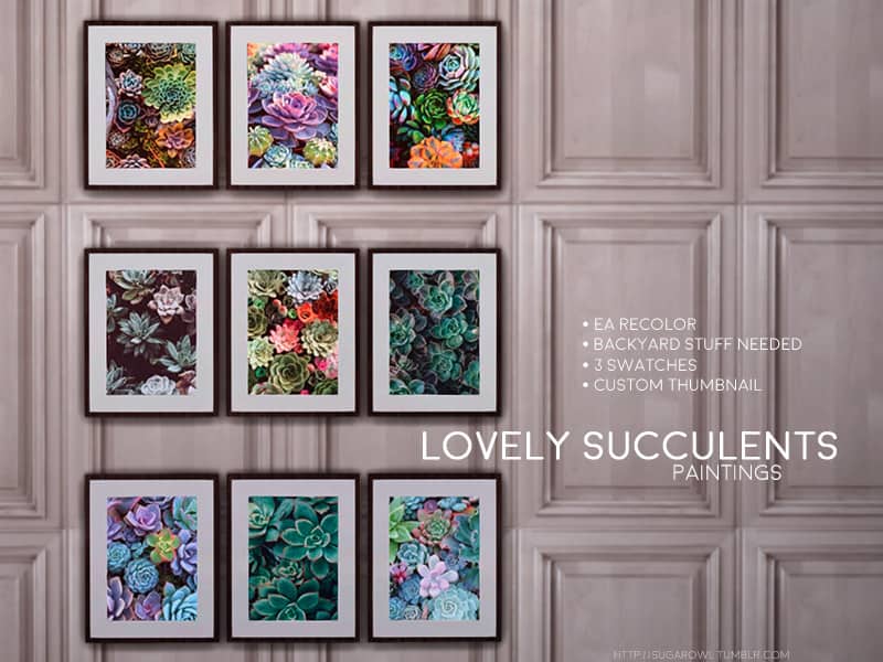 Our database contains only the highest quality Sims 4 mods that meet the most stringent requirements, like Lovely Succulents paintings | Backyard Stuff needed Sims 4 Mod. This guarantees that our visitors have access to the most exclusive and useful files.
