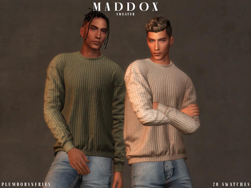 Our database contains only the highest quality Sims 4 mods that meet the most stringent requirements, like MADDOX | sweater Sims 4 Mod. This guarantees that our visitors have access to the most exclusive and useful files.