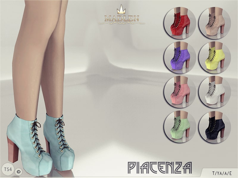 New lace-up boots featuring a covered platform and chunky wooden heel. Come in 9 colours (patent leather). Joints are perfectly assigned. All LODs are replaced with new ones.