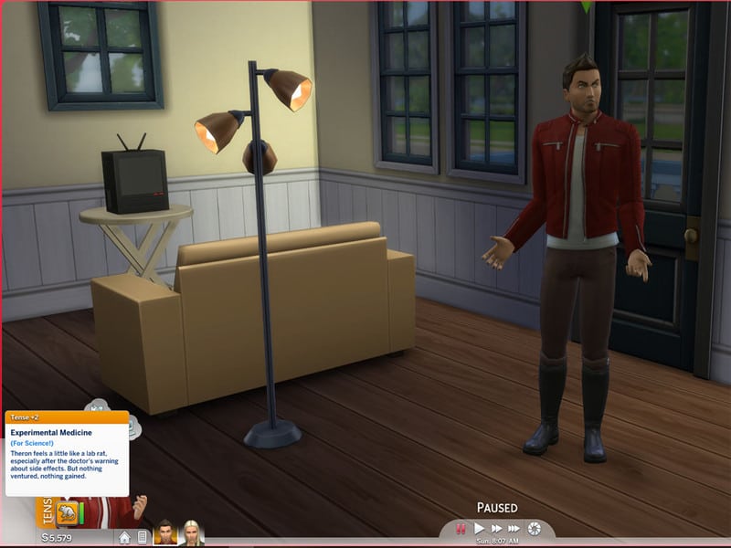 Along with the custom moodlets, I have re-purposed many already in-game moodlets to simulate things like mood swings, as I very much wanted the experience to feel a bit like mad science. For example, if you have the Vampires game pack, you may see “Mysteriously X” emotion pop up as a possible result of said experimental medicine. If you have the Cool Kitchen Stuff pack, you may see the ice cream moodlets like Plant Matter appear as “nutritional supplements”. If you have Spa Day or Outdoor Retreat, your Sim might come home from work with a Fertility treatment or potion. NONE of these expansions or packs are required; I’ve done my best to cover as many bases as possible within the confines of the base game, too.