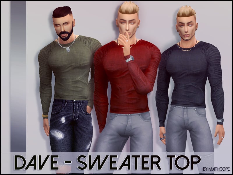 Our database contains only the highest quality Sims 4 mods that meet the most stringent requirements, like Mathcope Dave Sweater Top Sims 4 Mod. This guarantees that our visitors have access to the most exclusive and useful files.