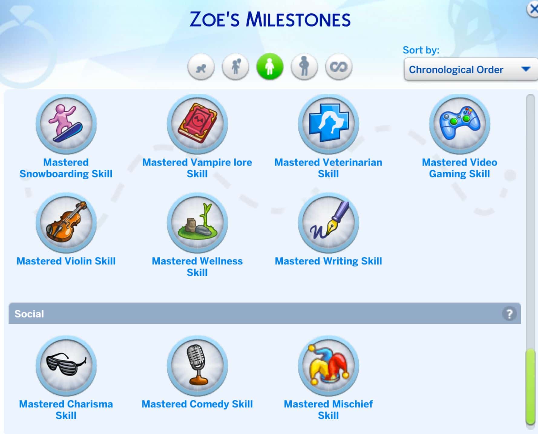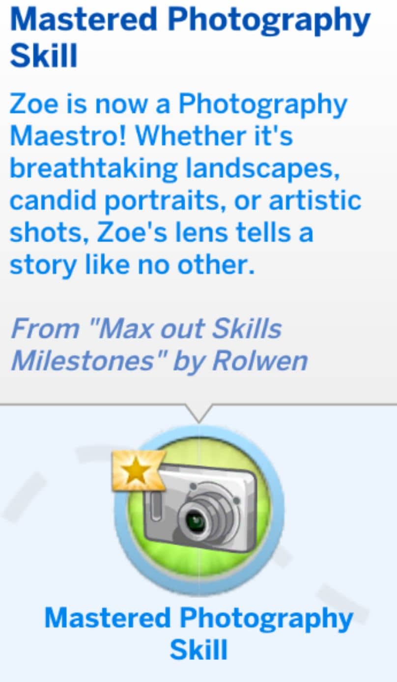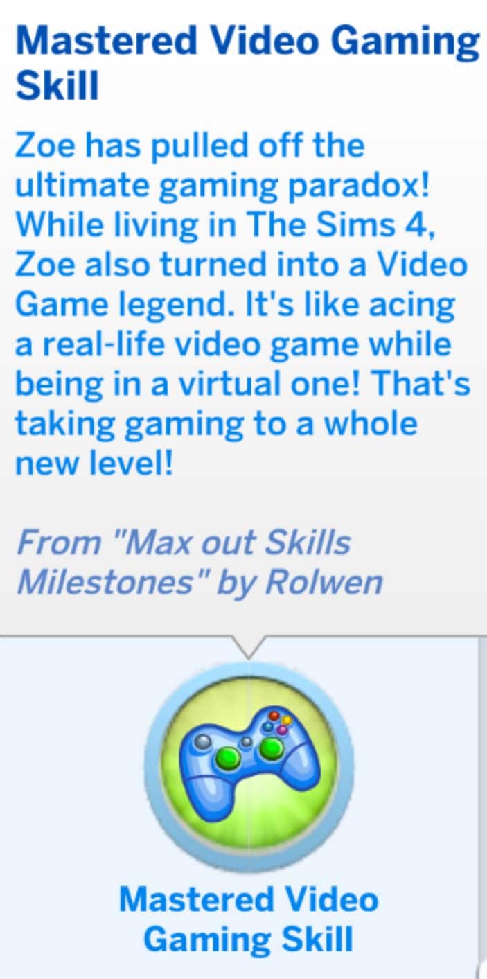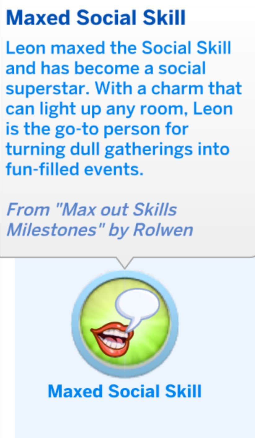 When a sim masters a skill, he’s going to receive a milestone for it.