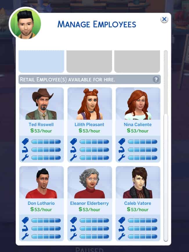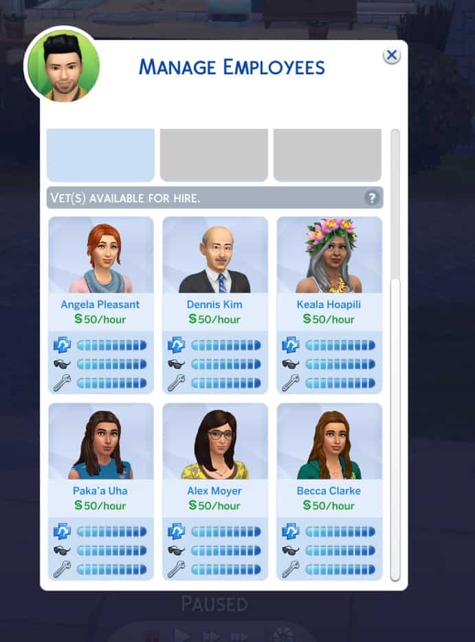 This allows you to hire any restaurant, Retail and veterinary staff without worrying about Levels!