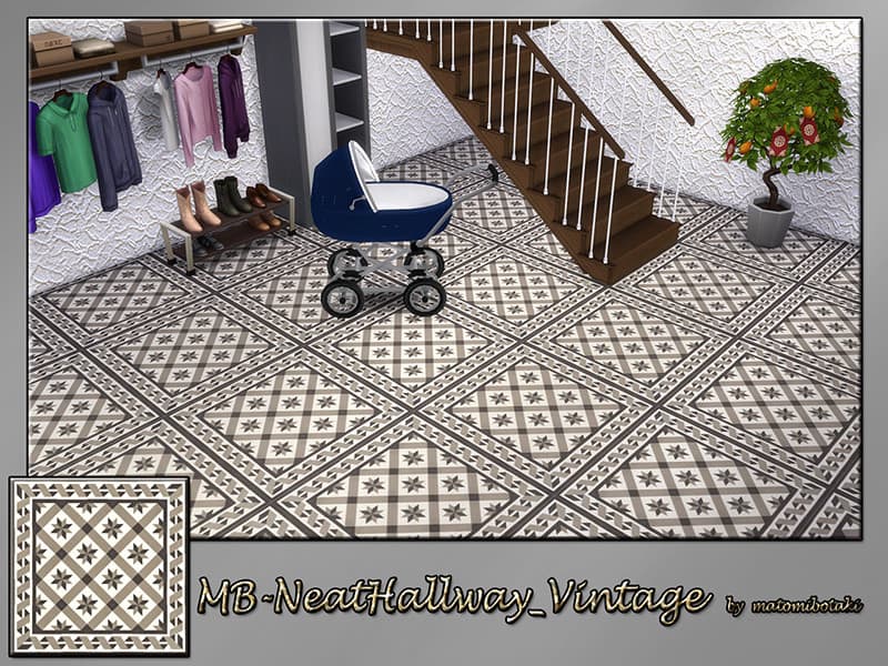 Elegant hallway tile floor in vintage look, for a stylish ambience, comes with custom thumbnail, created for Sims 4, by matomibotaki.
