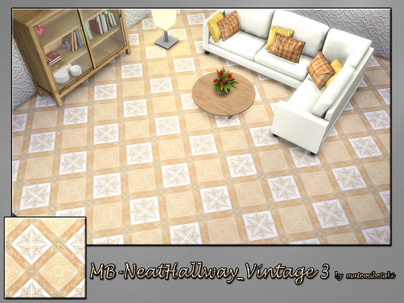 Elegant wooden inlaid work hallway floor in vintage look, for a stylish ambience, comes with custom thumbnail, created for Sims 4, by matomibotaki