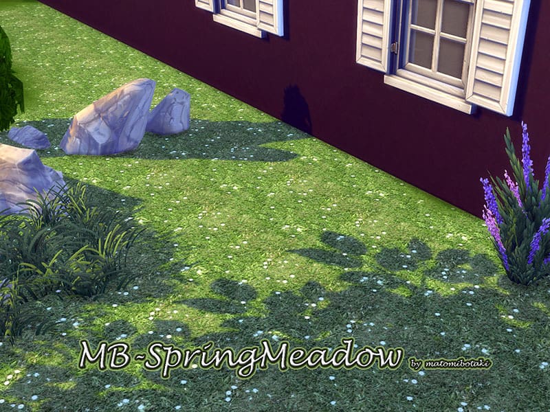 Green grass with little white flowers, looks like the beginning of spring, comes with custom thumbnail, created for Sims 4, by matomibotaki.