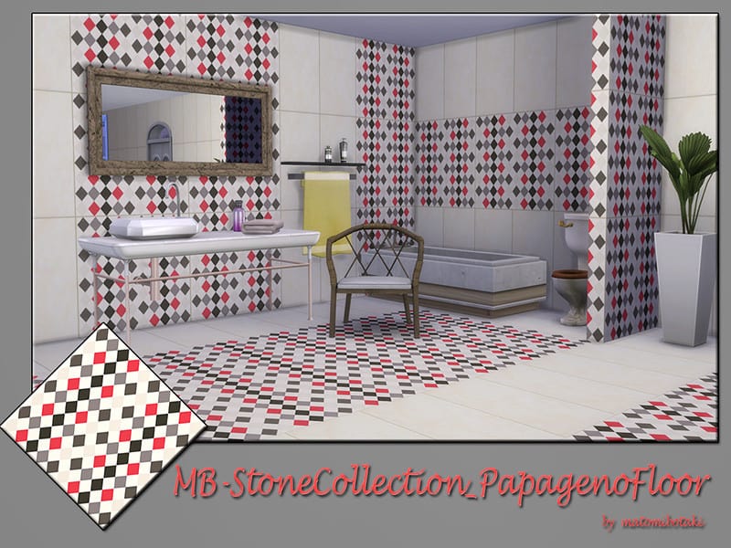 Tile floor with full decorative rhombus tile , comes with custom thumbnail, part of the – MB-StoneCollection_PapagenoSET – matching 3 tile walls and 2 floor tilem, created for Sims 4, by matomibotaki.