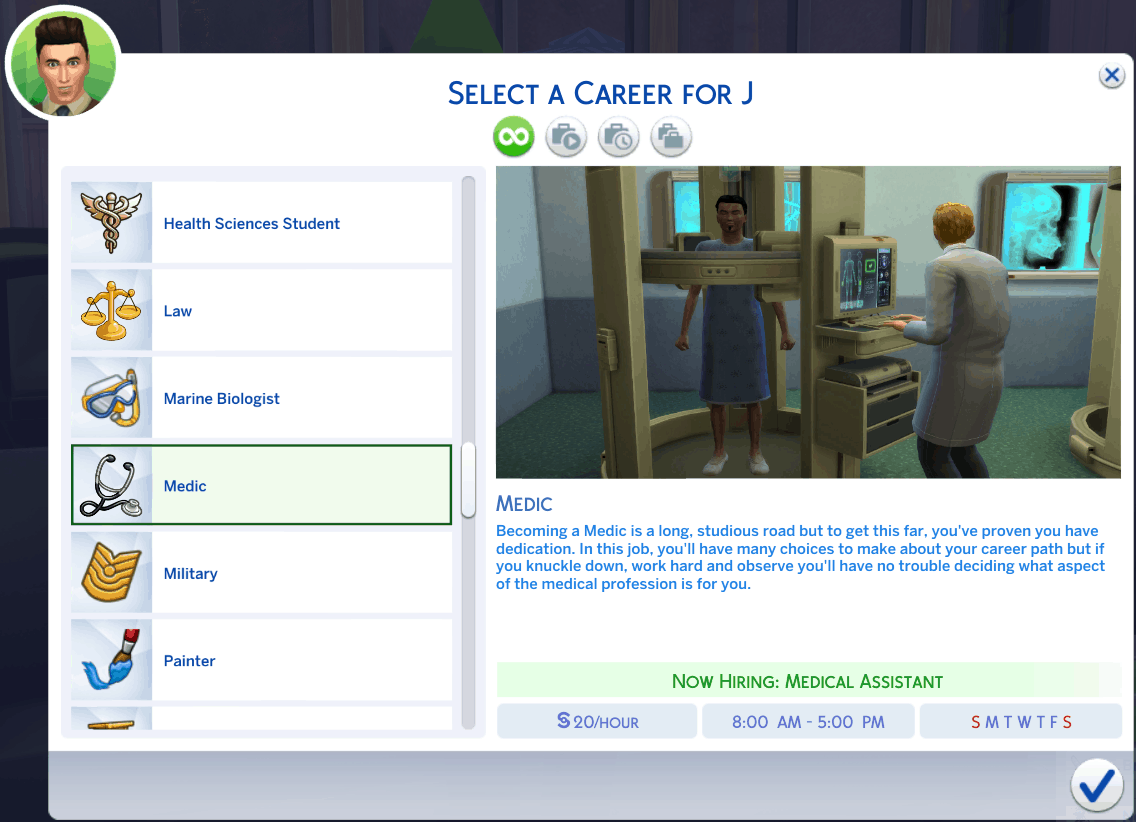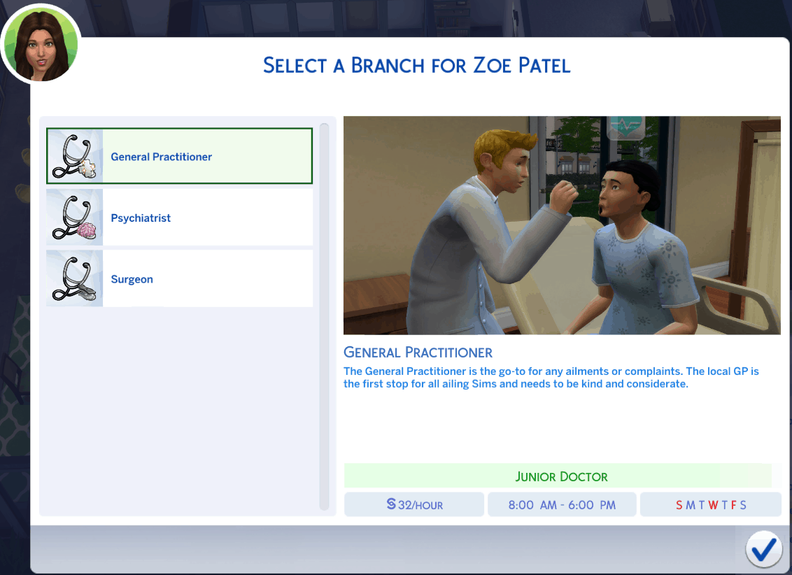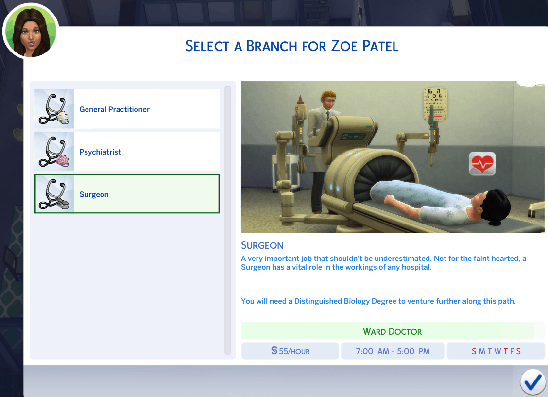 I’ve always enjoyed playing the Doctor career from Get To Work but I still felt like I needed more variety for medical careers. I created the Medic Career for Sims 3 and it has branches for General Practitioner (GP), Surgeon and Psychiatrist. So I’ve converted it to Sims 4!