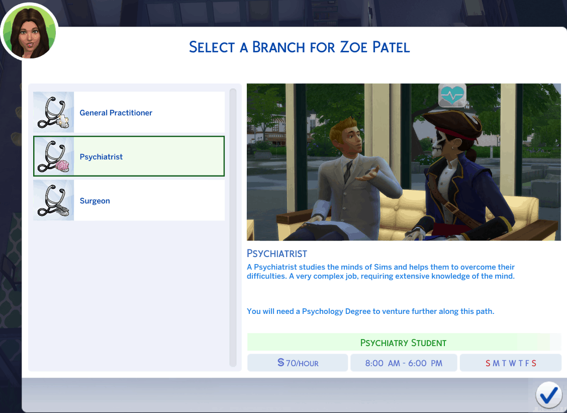 3. Psychiatry Student ~ The world of psychiatry has fascinated you since your University days and you’ve been granted the opportunity to make this work your own. As a student, you’re going to study the workings of the sim mind and sit in on seminars and workshops from some of the best psychiatrists in SimCity. So crack open those notebooks and start studying again!