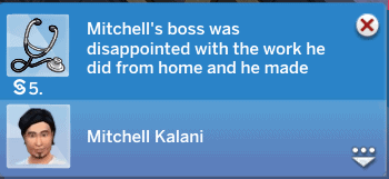 For reasons known only to Sims 4, in spite of completing all work from home tasks, sometimes the boss is disappointed with the work done. I don’t actually know why this happens but, as you can see with the notifications above, you get the money. Just the notification is a bit off. This is a known issue and as yet, there’s no known solution.