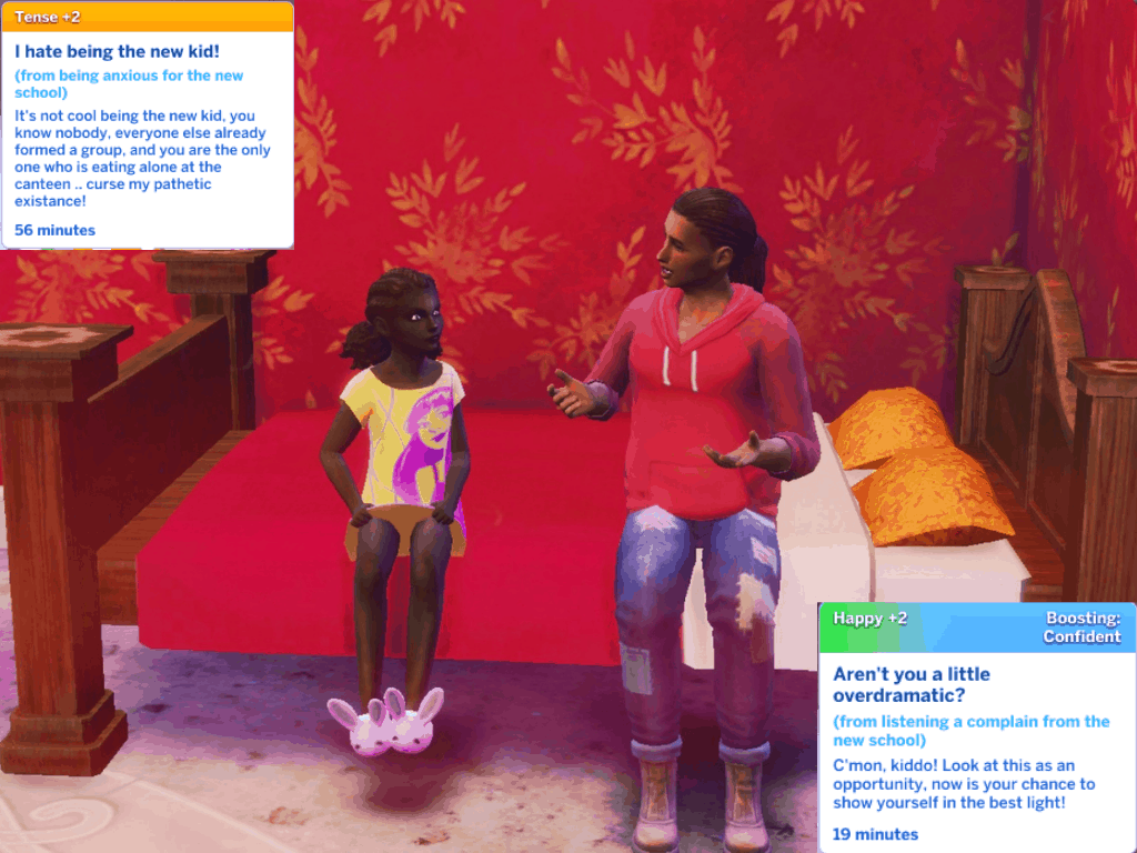 Do you feel like most interactions are heavily focused on couples? Then great, I’m not the only one! Although I don’t play that much anymore since I started modding, I must admit that I like my family stories, so I always wanted more siblings related interactions. I don’t even want to start with all these generic interactions that give you nothing when performed. Anyway, this small mod gives you 13 new interactions for children and teens. Bear in mind that they can be performed only from and towards this age group and only between relatives (with a few exceptions). The interactions are available for siblings, step-siblings and cousins, also some of them are available for roommates and friends with a high level of friendship (best friends). So let’s see what are the interactions?