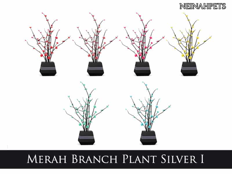 These cute little star blossoms on dark branches on this silver accented pot for the Merah Collection in 6 colors.