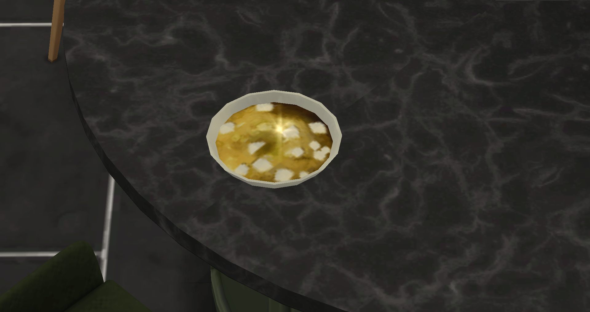Here we have a new custom food for your sims to enjoy. It’s miso soup, a traditional Japanese soup, which can consist of a range of different ingredients but at the heart if it is dashi stock and miso paste. This version uses vegetarian dashi stock and is packed with tofu, for all your veggie sims to enjoy.