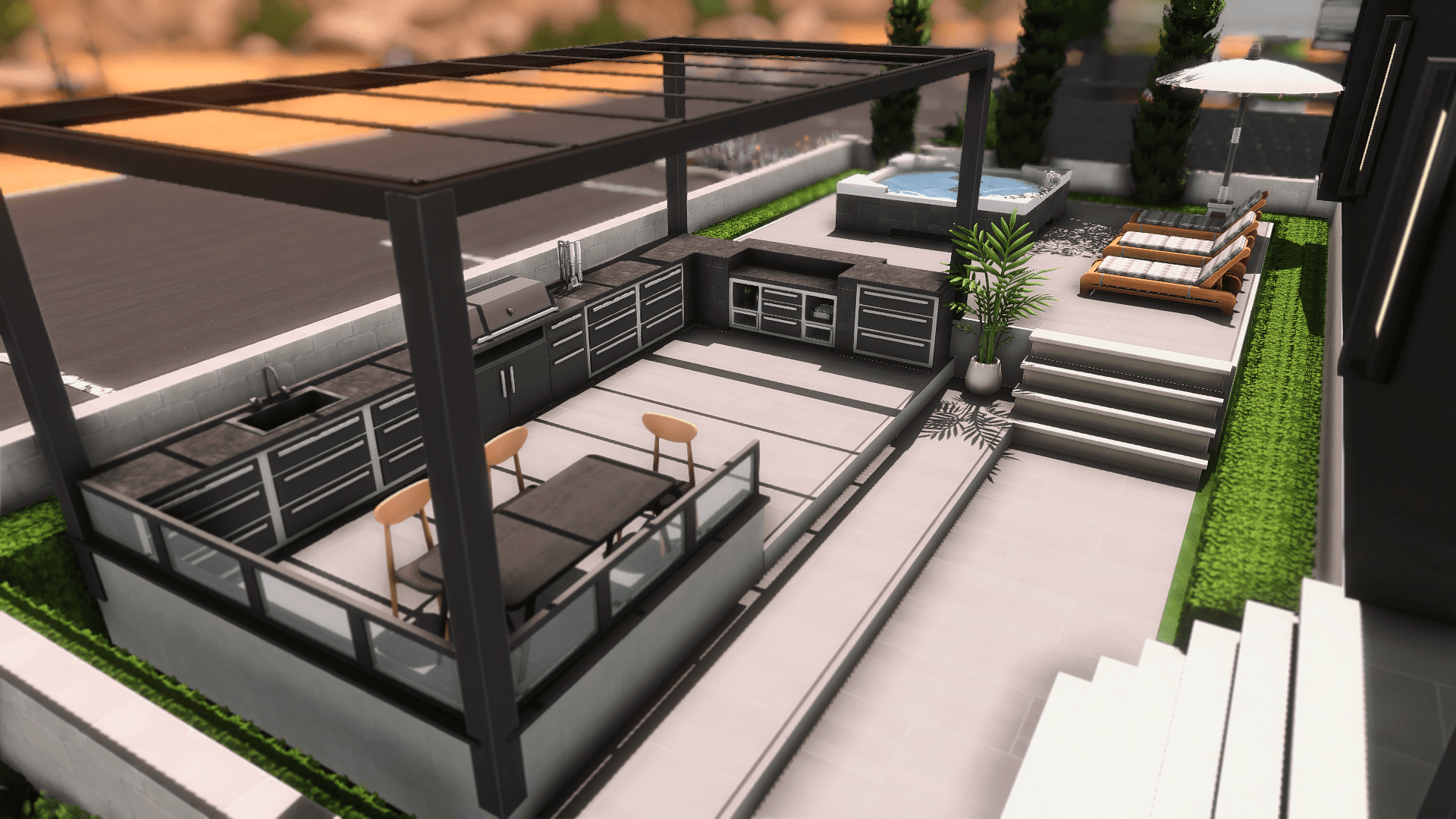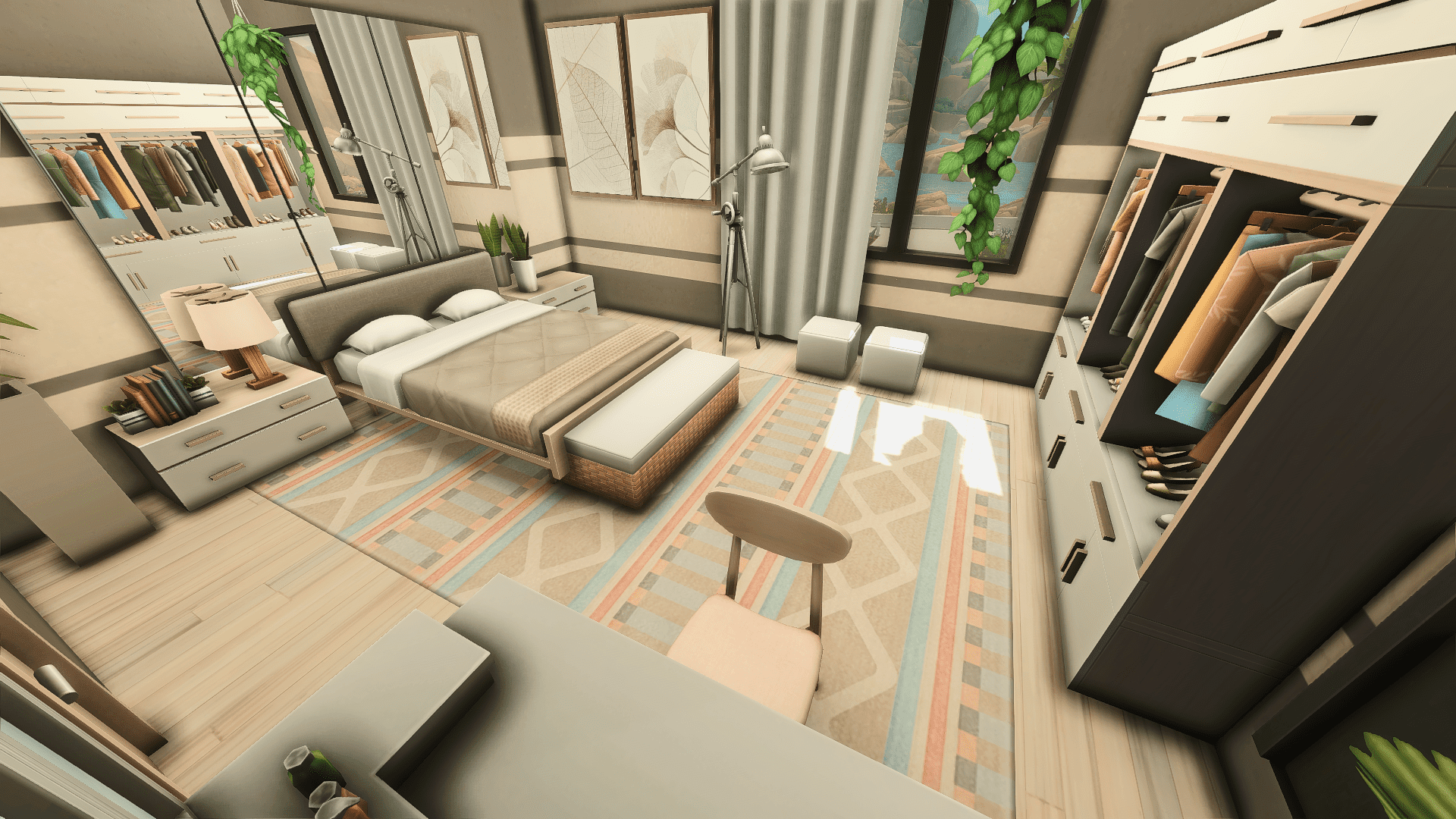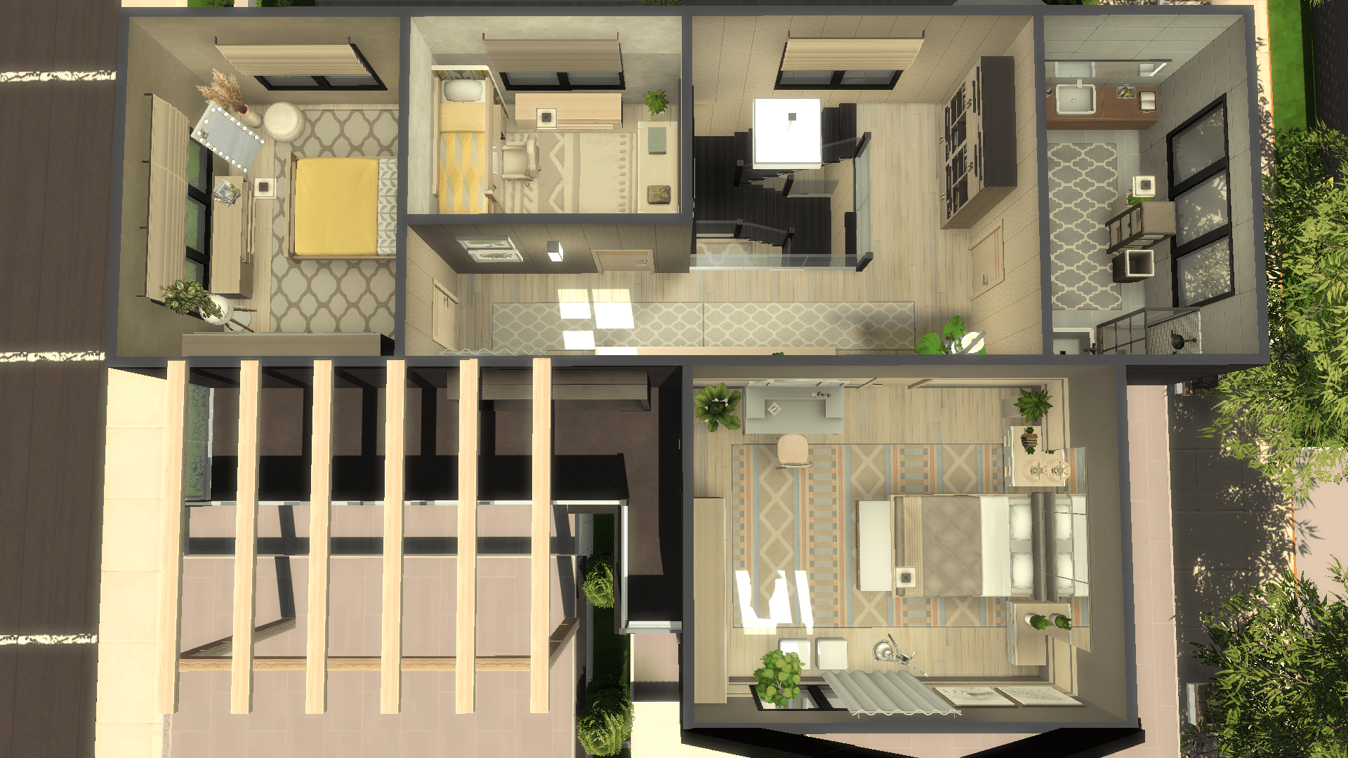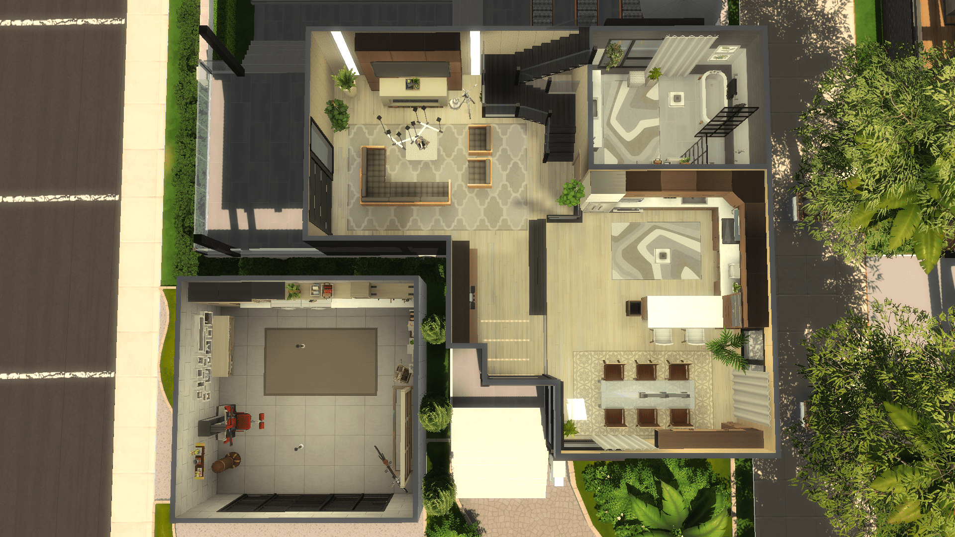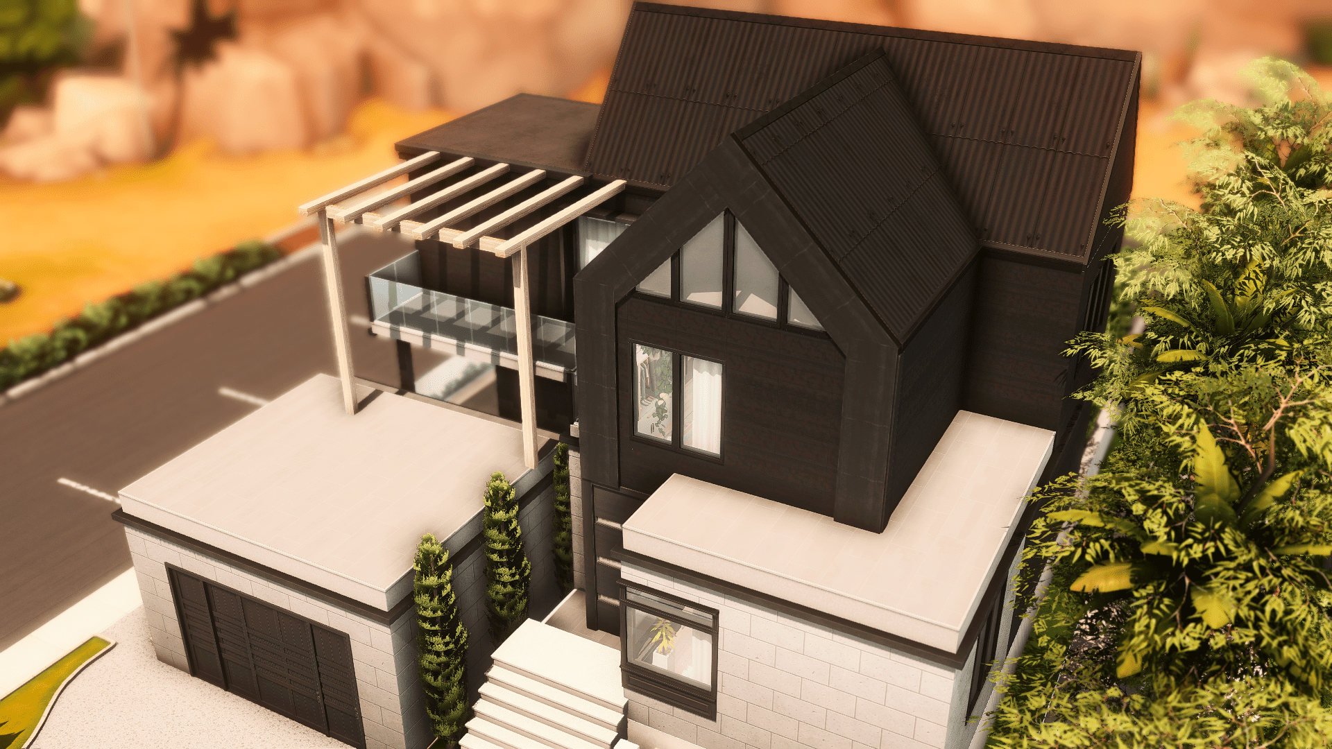 This little modern house is the perfect home for your Sims. With three bedrooms, two bathrooms and a big garage, this place full of style is about to make part of your best Sims moments.