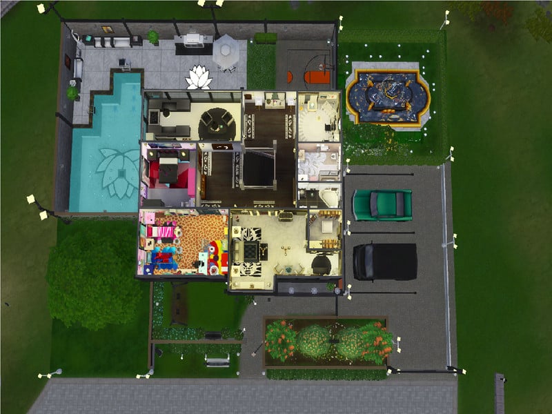 This building is mostly built with the packs “The Sims 4 Get Famous” and “The Sims 4 Spa Day”, but some accessory packs were added for small decorations, so with the pack “Get Famous and Spa Day “You can enjoy it without problem.
