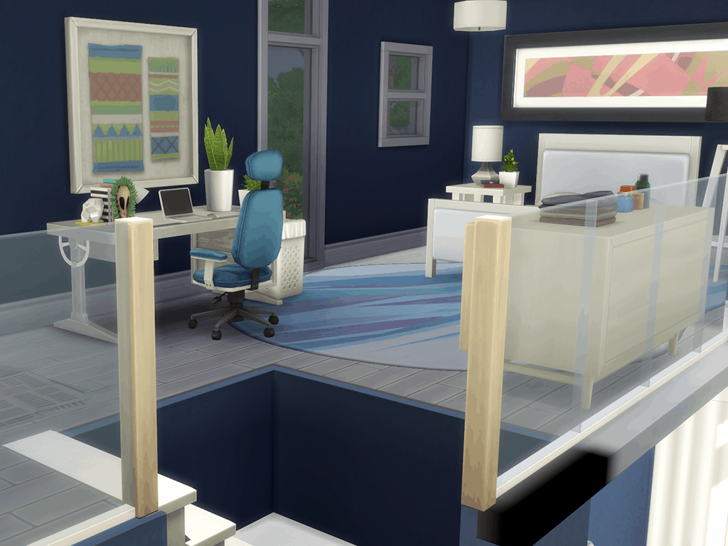 This is a one bedroom, one bathroom tiny loft that’s built with modern architecture in mind. The house is placed in Mid-Nowhere in The Island in Windenburg which makes it really private and peaceful.