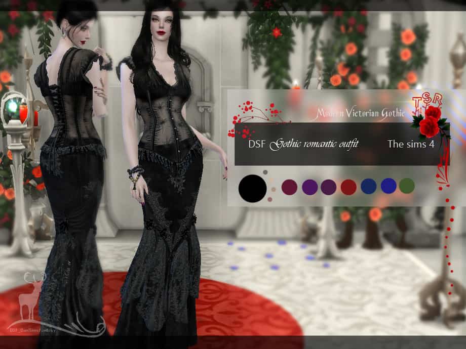 It is a gothic outfit that consists of a corset-type shirt with a long skirt in velvet material.