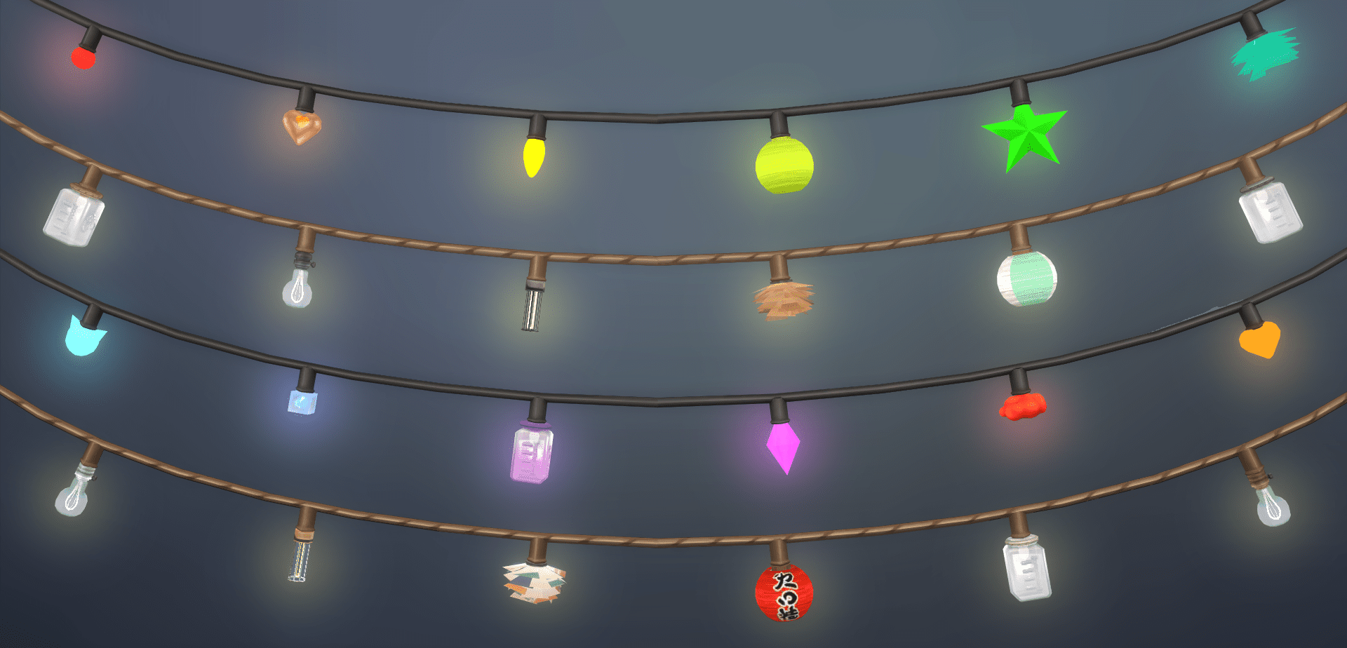 I ​always wanted to be able to choose each bulb colour of the string lights that were already in game, and found myself motivated to quickly patch together something I could use in my own gameplay. Well, ADHD happened and I hyper focused myself into a frequently abandoned overdone pack. But! I am pretty sure that I have ironed out all the kinks, and finally I can enjoy and share the fruits of my effort.