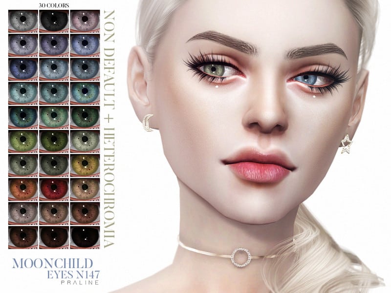 Eyes in 30 colors, appears at the eye color category, heterochromia version can be found under facepaint. For female and male sims, from toddler-elder.