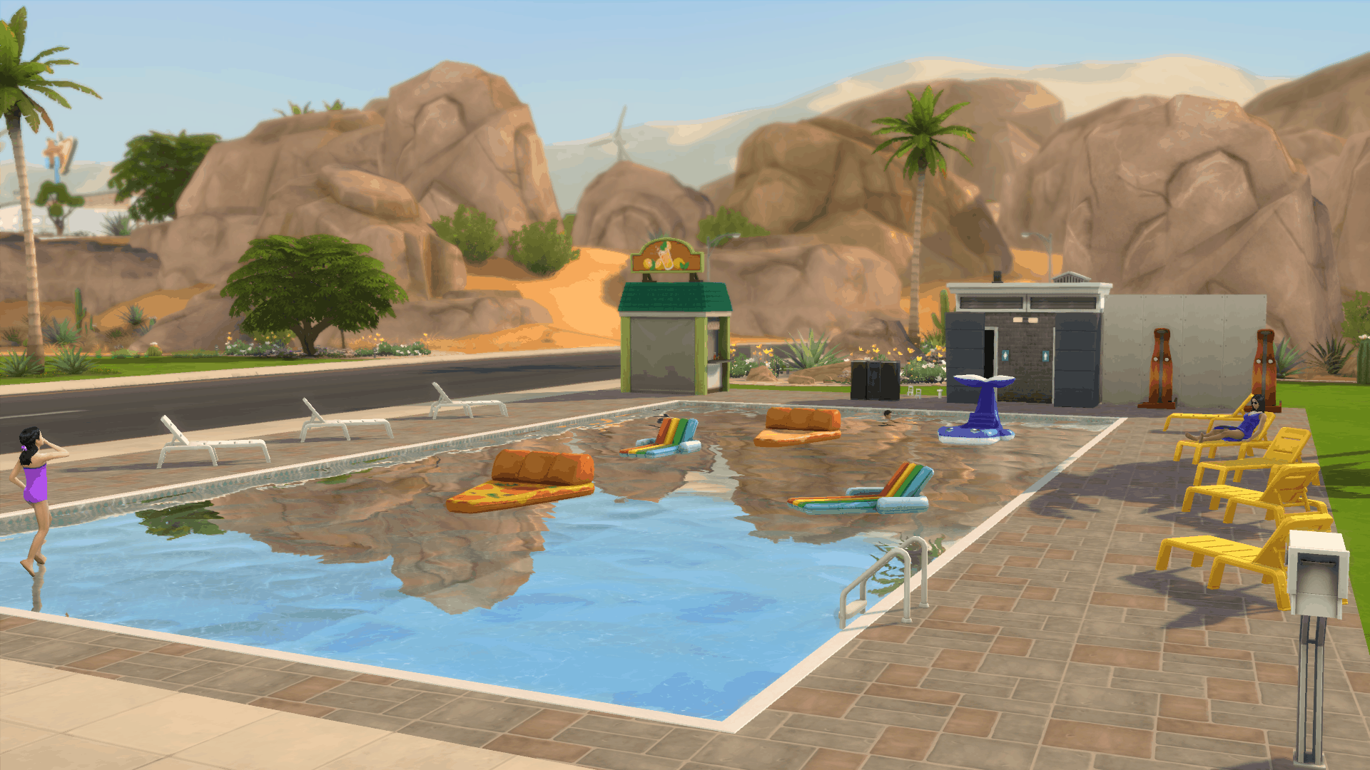 -I made over some lots such as residential and the Blue velvet. Keep in mind I am not a builder and they are alright. Another addition is a community space that is great for friendly hangouts or just a place to crash for the night if your sim is too tired to go home.