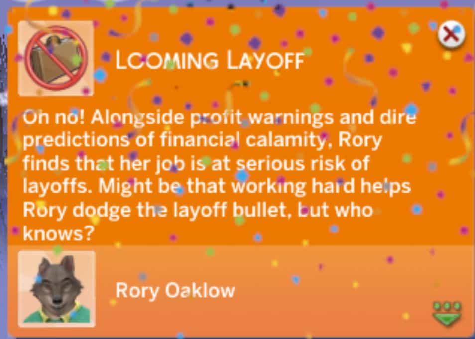 Are you sick and tired of your Sims constantly getting laid off from their jobs? Me neither!! Because despite the fact that I bought Growing Together pretty close to its release date, I’ve still yet to see my Sims face a layoff period even ONCE!!!