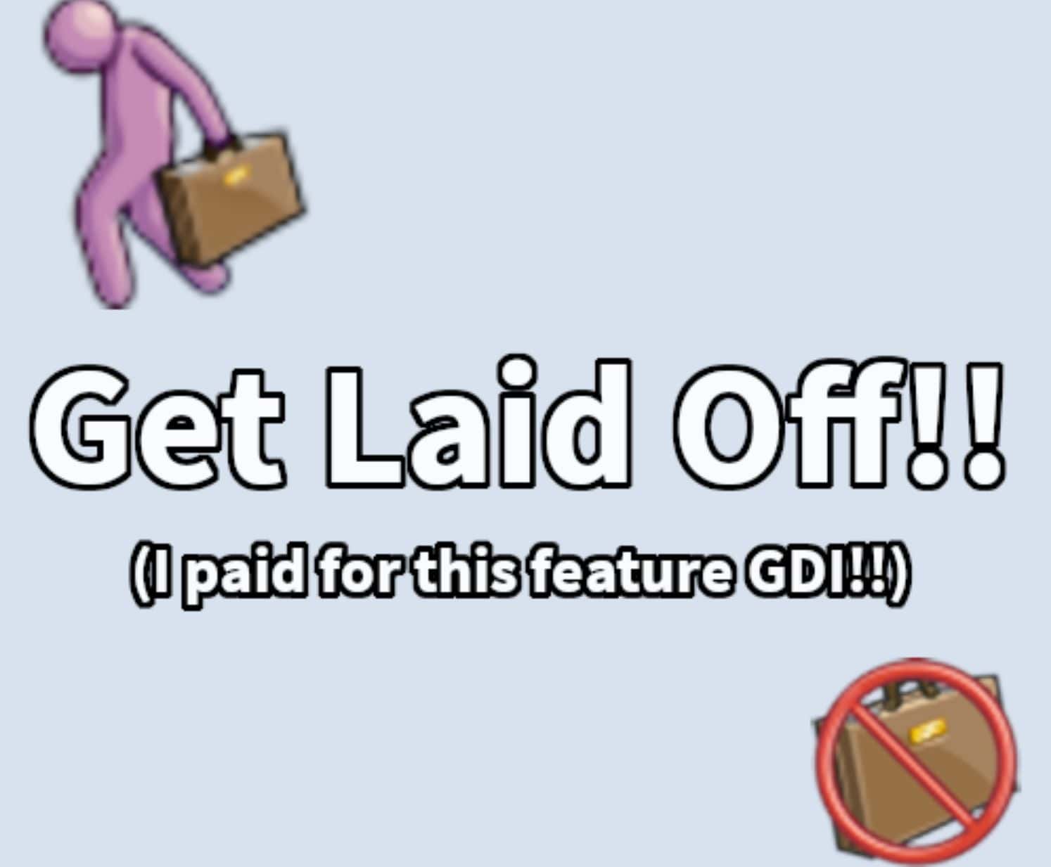 And looking at the code, it’s not hard to see why. The odds that a layoff period will start are 1%. 1%!!!! That’s not even the odds that your sim will actually get laid off, just the odds that you’ll EVER see this feature in action.