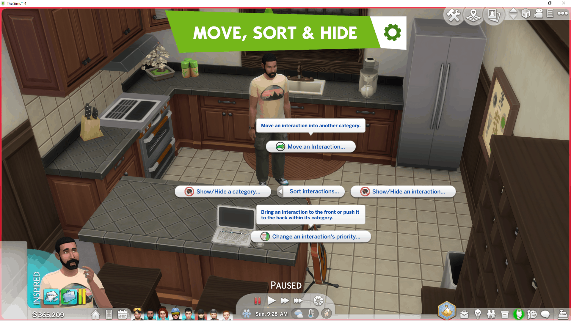 This mod allows you to move, prioritize and hide any interaction within the game (sim, pets, objects, phone, debug).