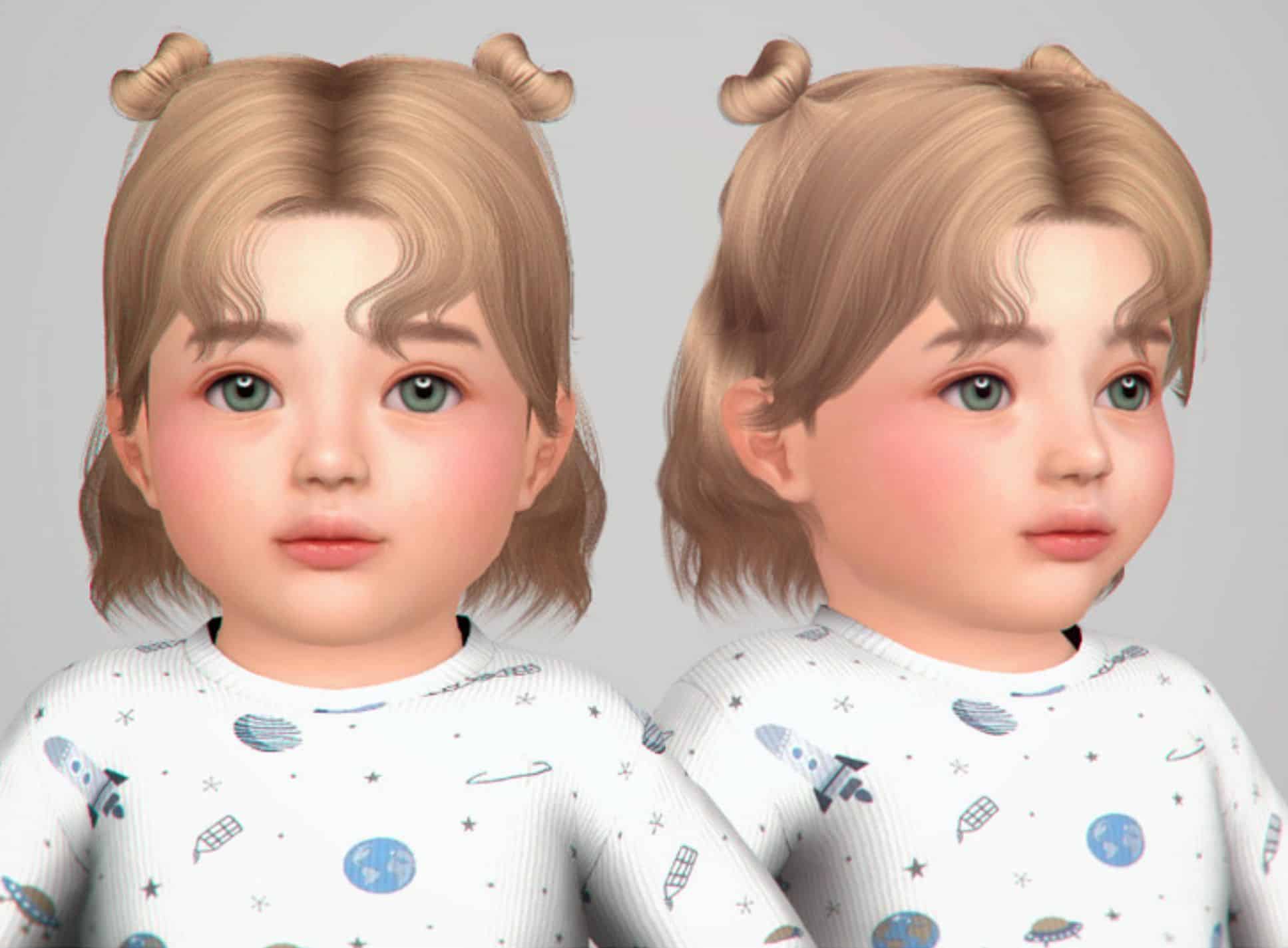 Wavy short hairstyle with small twin buns in 40 colors for Infant.