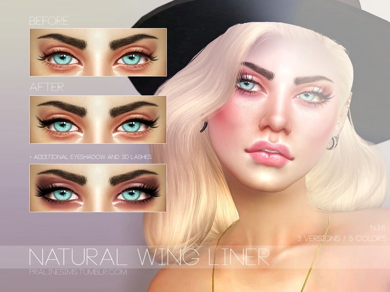 Our database contains only the highest quality Sims 4 mods that meet the most stringent requirements, like Natural Wing Liner N36 Sims 4 Mod. This guarantees that our visitors have access to the most exclusive and useful files.