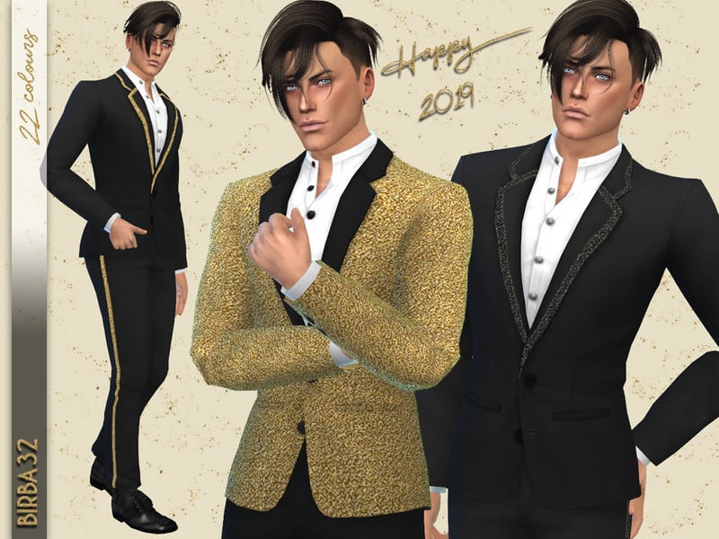 A sparkling suit for man from black to glold and through other 22 colours. Modern shape and design. Mesh edited by me. Base game.