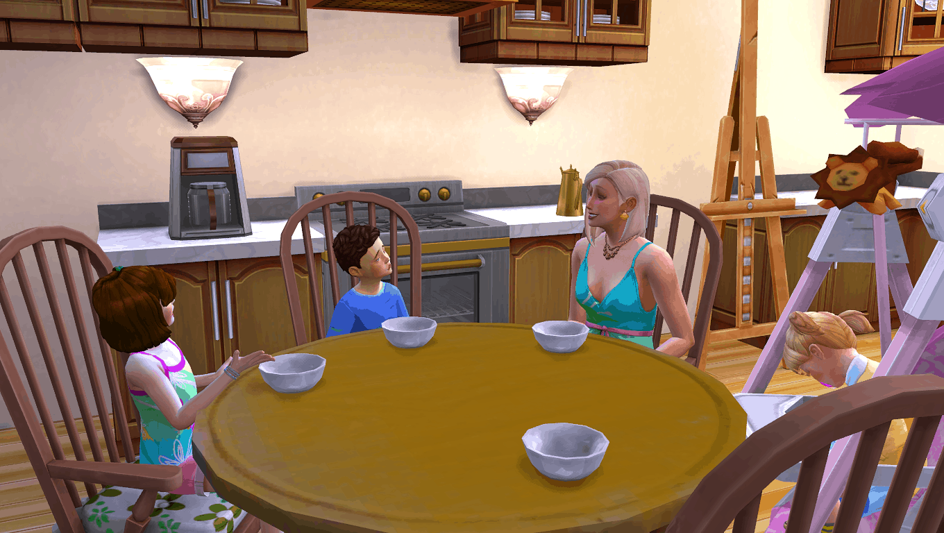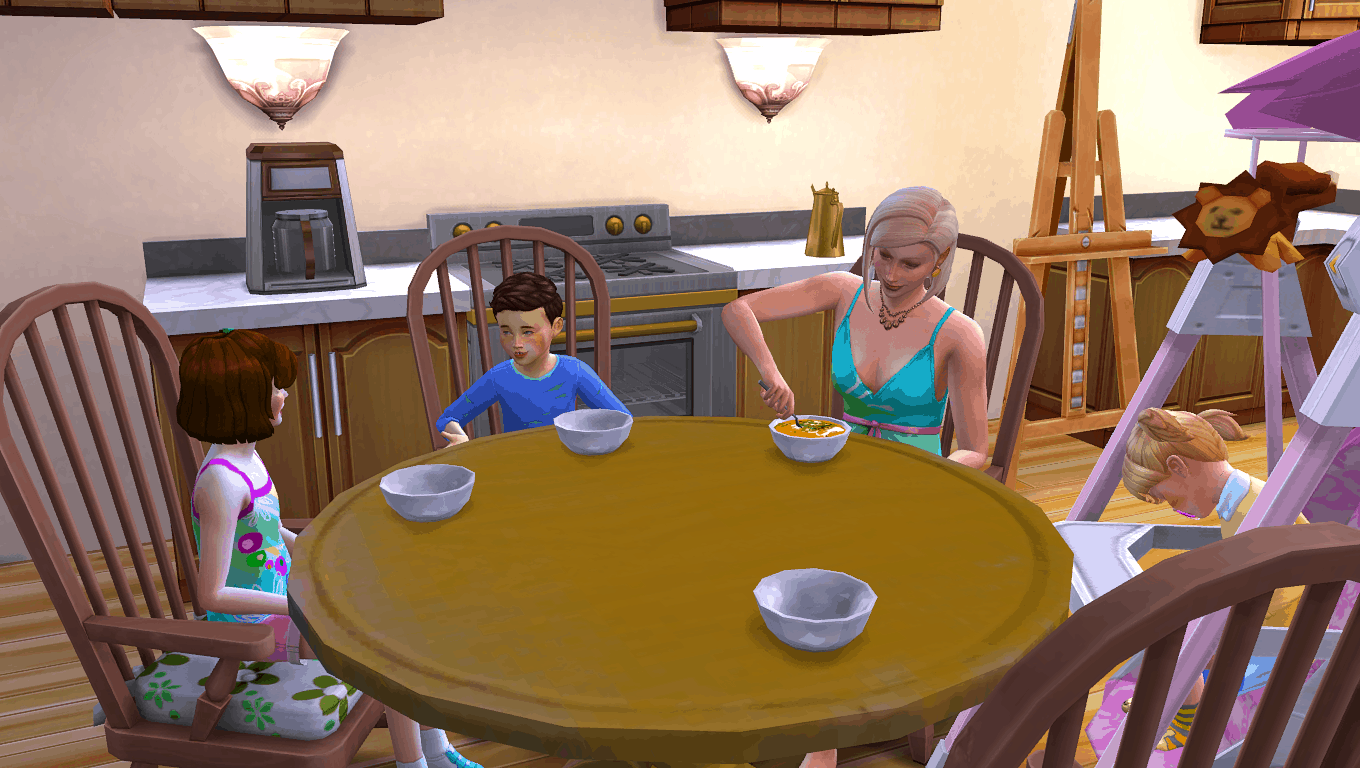 Sims won’t get up from the table to wash the dishes, right after having eaten.
